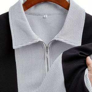 fortei Men’S Fashion Summer Half-Zip Polo Shirt – Slim Fit, Short Sleeve, Half-Zip Collar, Stretch Fabric, Stylish Workwear, POLO SHirts