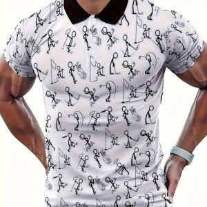 Men’S Casual Striped Short Sleeve Polo Shirt – Summer Fashion, Button-Up Design, Non-Stretch Fabric, Ideal for Casual Attire, Summer Casual Wear | Classic Polo Style | Buttonup Shirt
