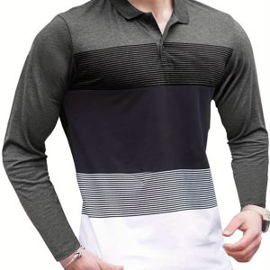 Men’s Multi-color Golf Shirt For Spring And Fall, Casual Stylish Long Sleeve Top As Gift