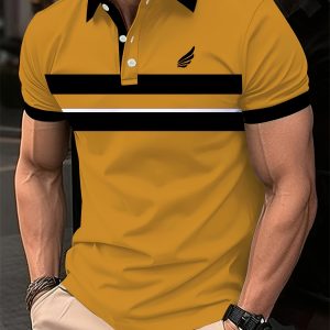 Men’s Slim-Fit Striped Knit Shirt – Casual Short Sleeve with Button Detail, Breathable Viscose Blend, Machine Washable