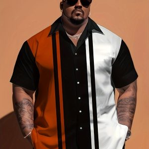 Men’s Shirt – Mustard Yellow & Black Accent Collar – Button-Front Placket – Breathable Regular Fit Shirt for Business Casual, Everyday & Formal Events – Machine Washable Top, Casual Wear, Stylish Contrast Trim, Durable Fabric, Nontransparent Material