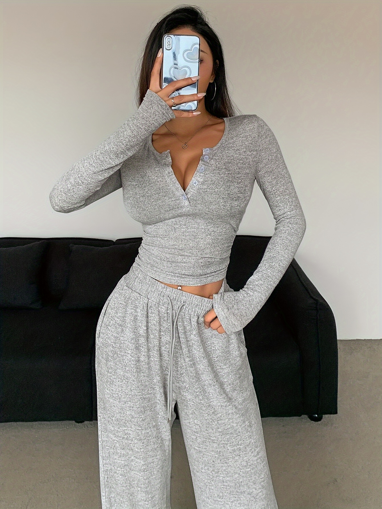 2pcs Women’s Springu002FAutumnu002FWinter Long Sleeve Long Pants Open Front Pajama Set