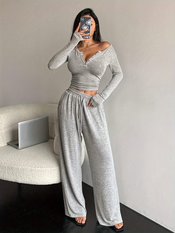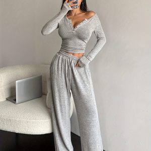Be the first to review “2pcs Women’s Springu002FAutumnu002FWinter Long Sleeve Long Pants Open Front Pajama Set”