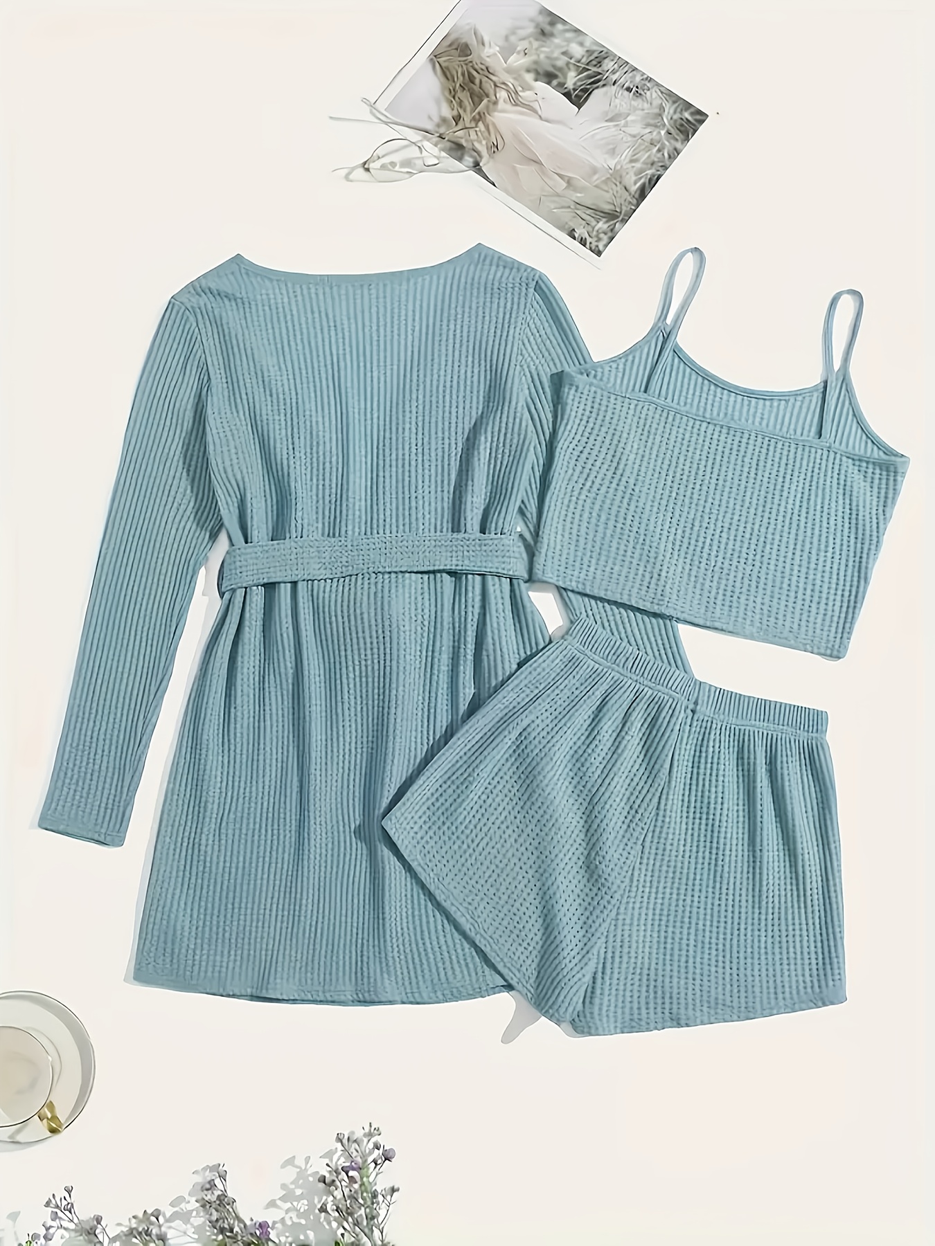 3pcs Casual Pajama Set outer Robe, Vest, And Shorts Loose, Soft, And Comfortable Women’S Pajama Set
