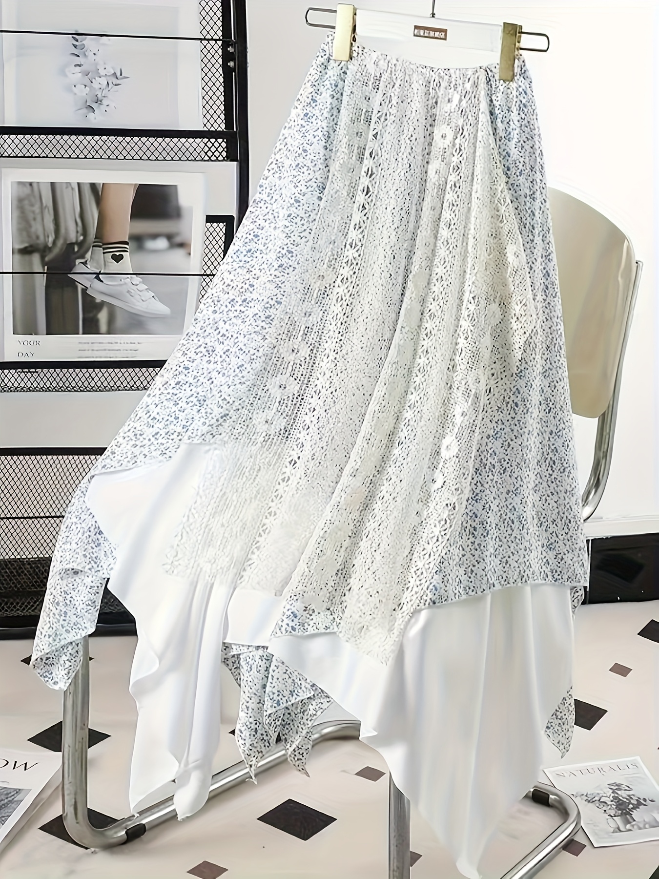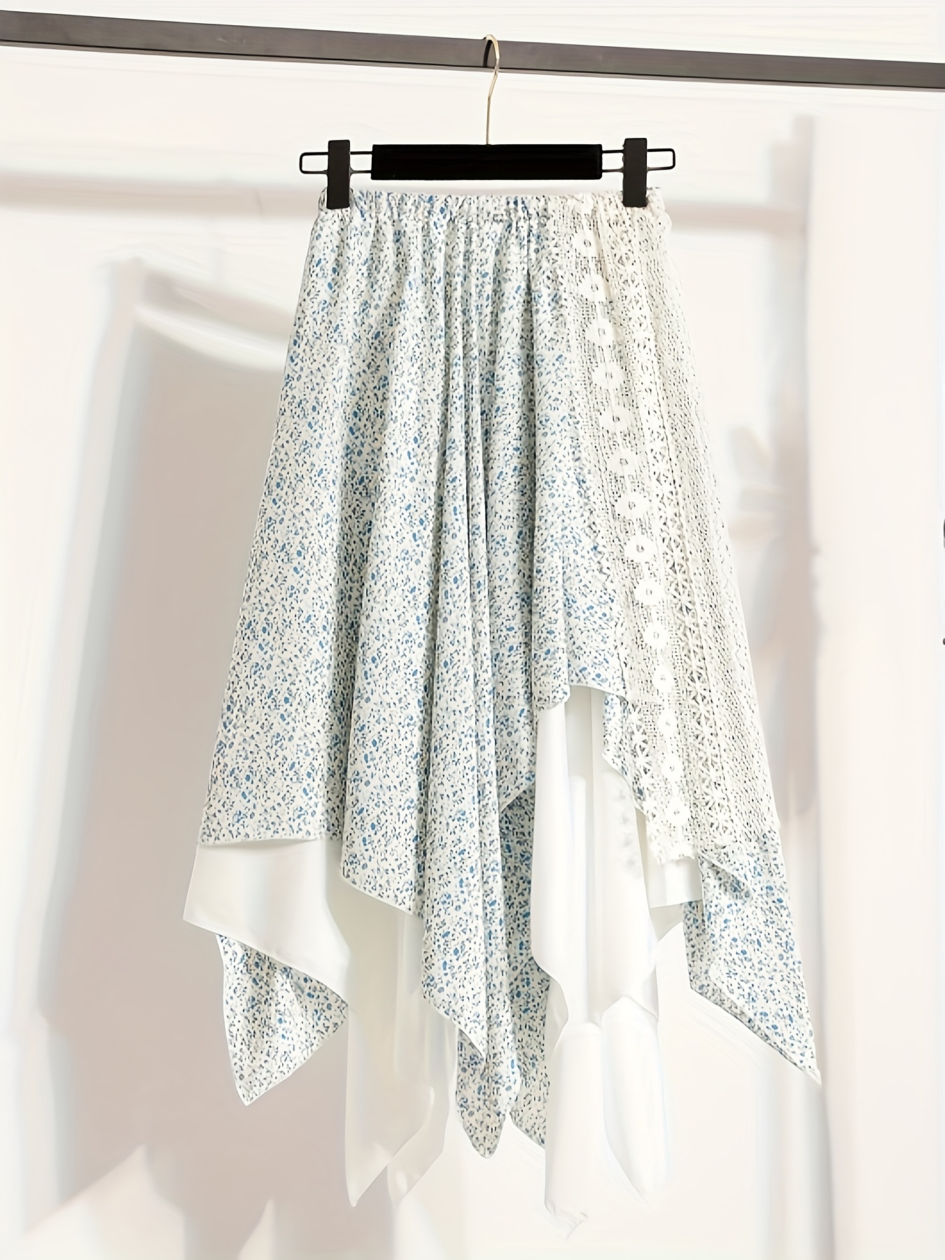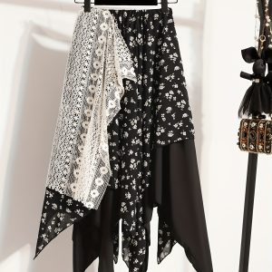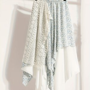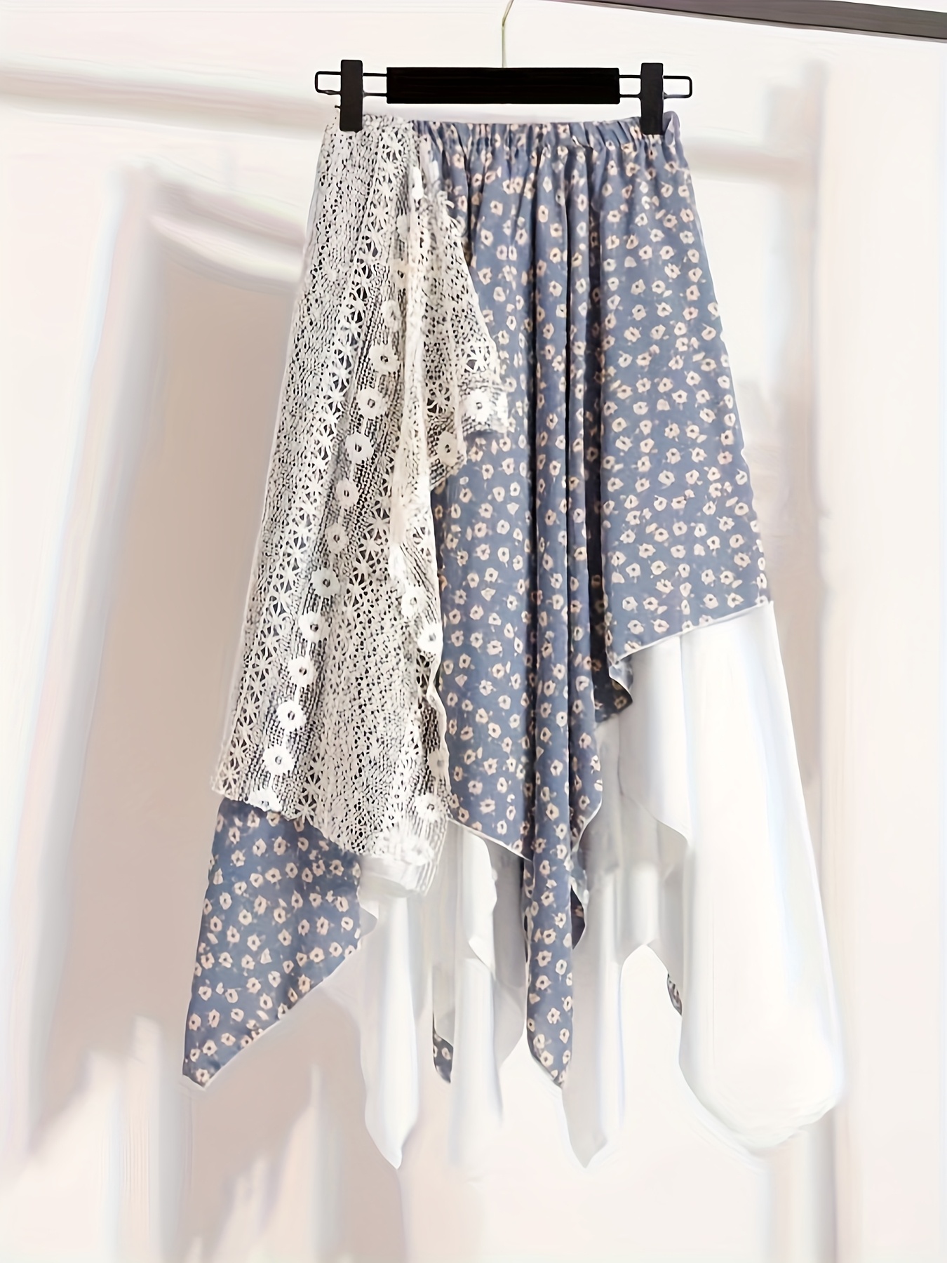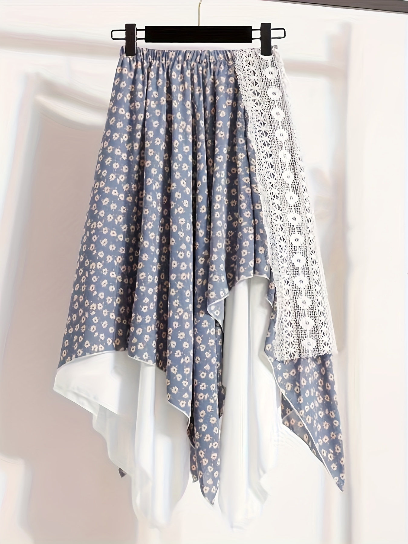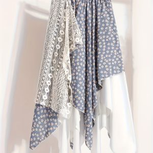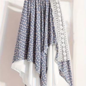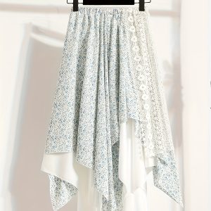 Chic Skirt Light Blue Floral Skirt, Chic Mid-Length Irregular A-Frame Design | Contrast Lace Detail – Versatile All-Season Fashion Accessory