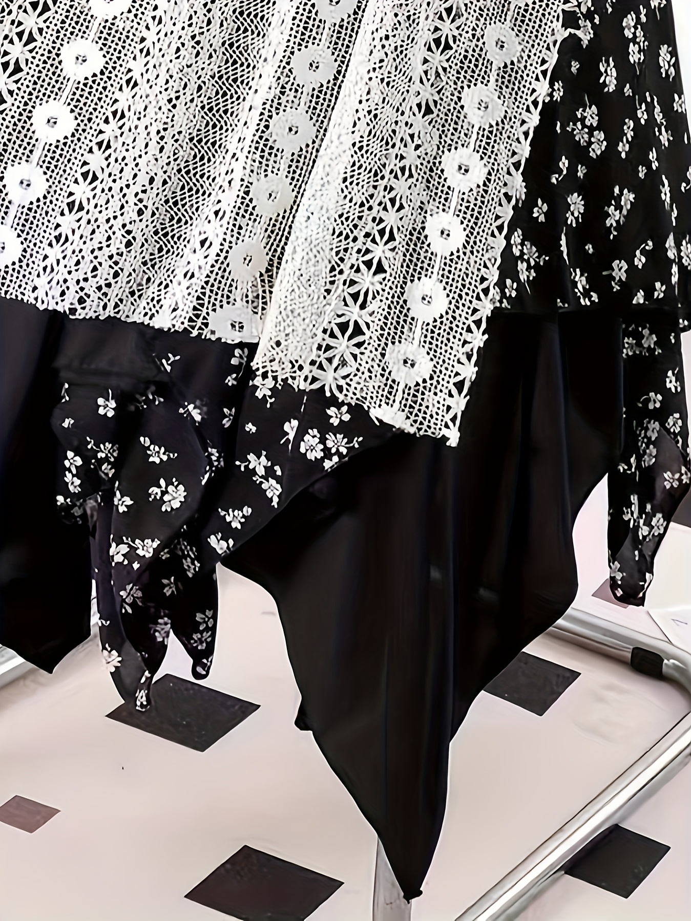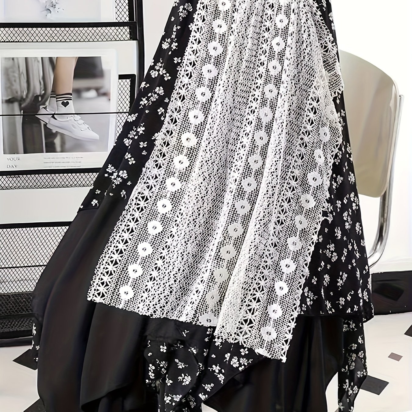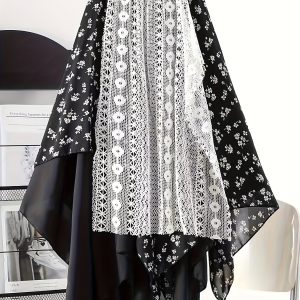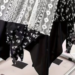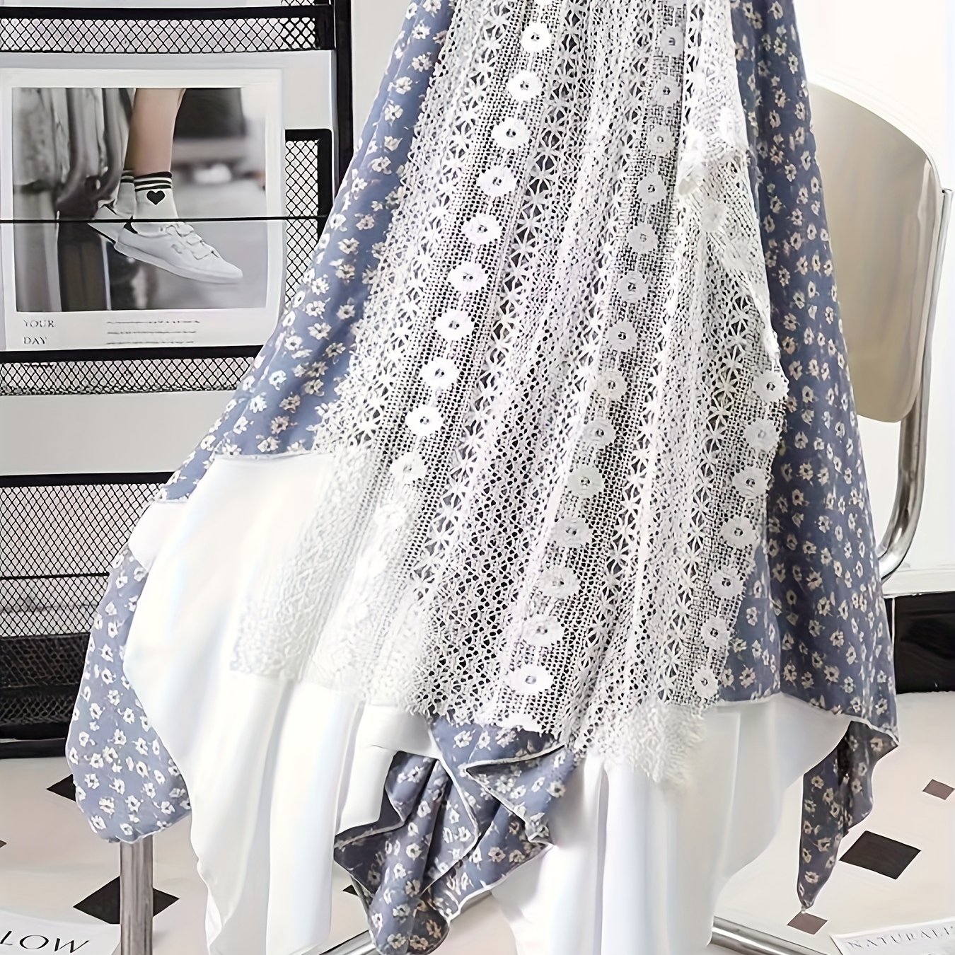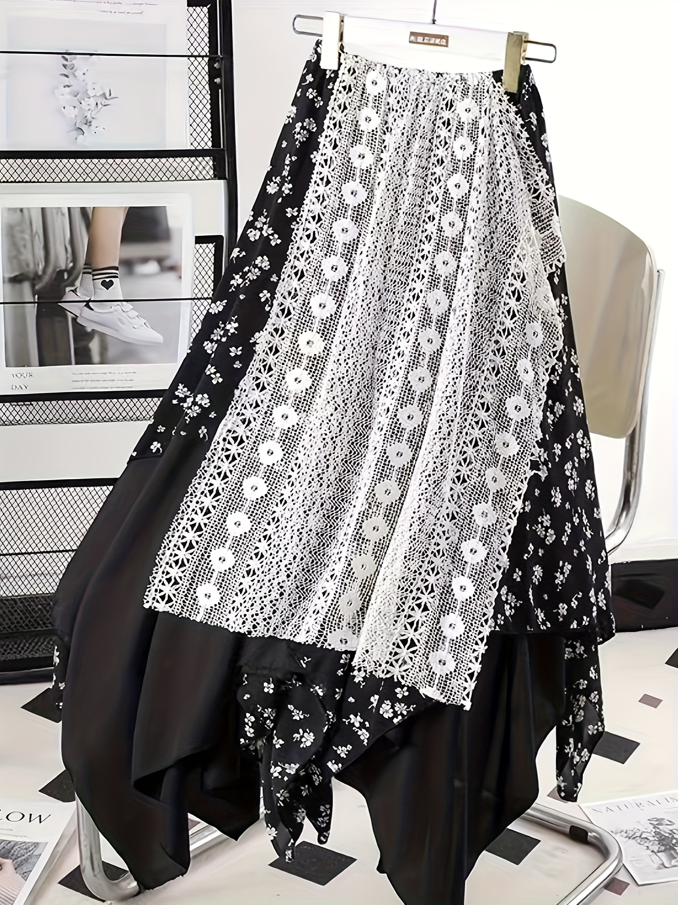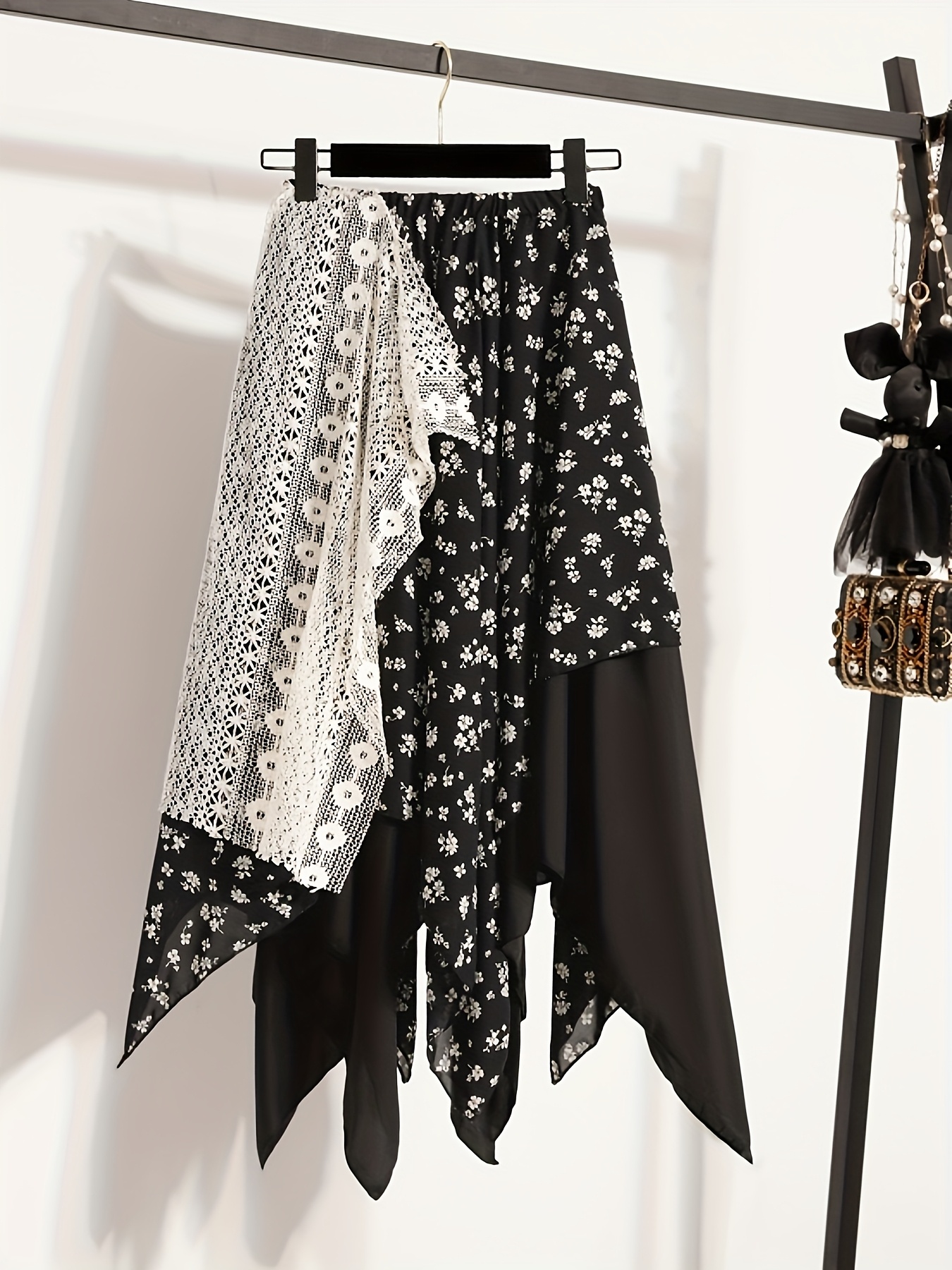 Chic Skirt Light Blue Floral Skirt, Chic Mid-Length Irregular A-Frame Design | Contrast Lace Detail – Versatile All-Season Fashion Accessory