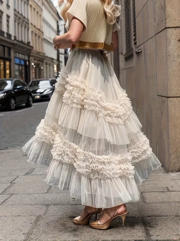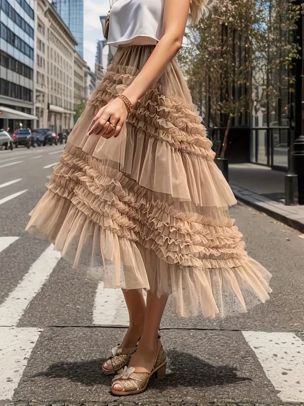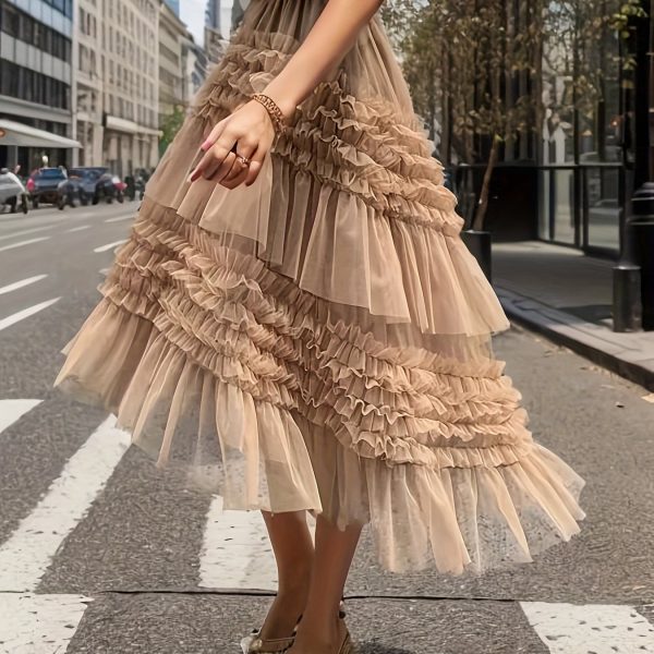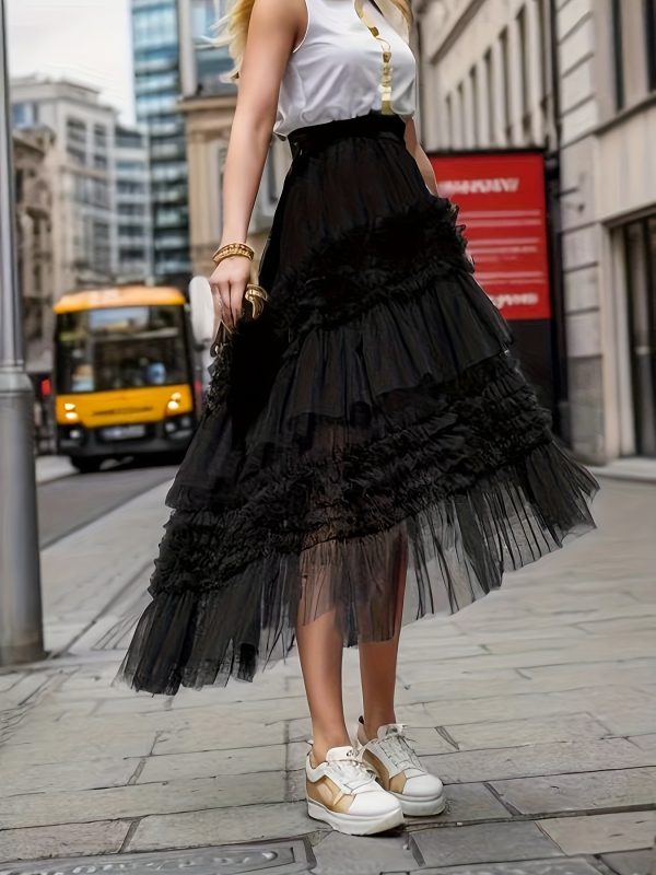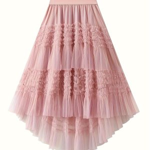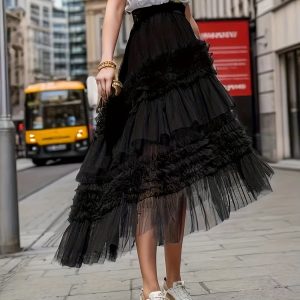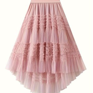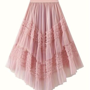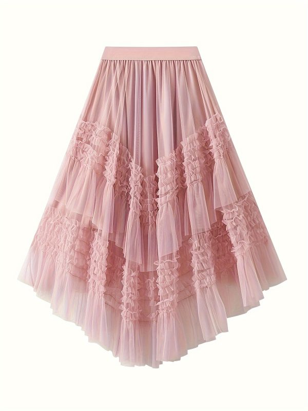 Elastic Waist Asymmetrical Skirt, Elegant Loose Skirt For Spring & Summer – Women’s Clothing – Flowy Fabric – Versatile Style for Casual & Formal Occasions – Perfect Gift for Women