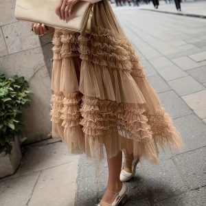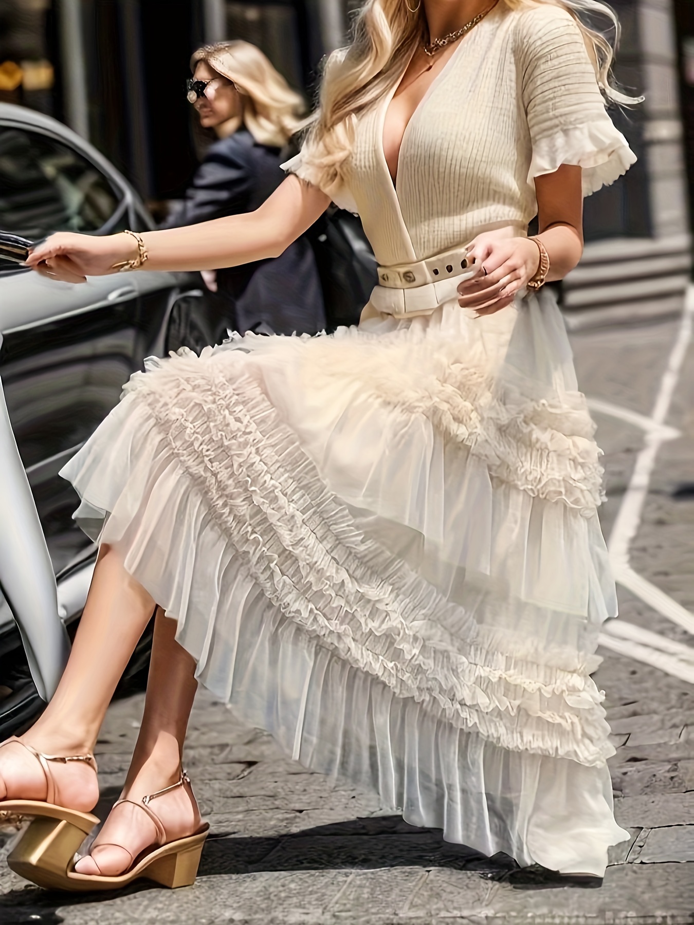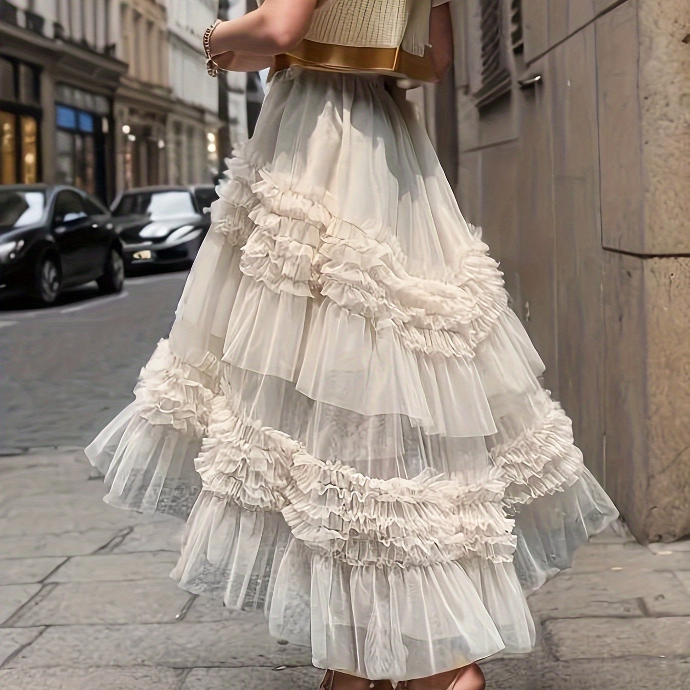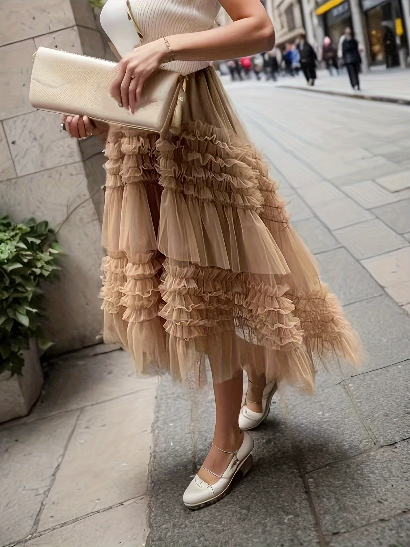 Elastic Waist Asymmetrical Skirt, Elegant Loose Skirt For Spring & Summer – Women’s Clothing – Flowy Fabric – Versatile Style for Casual & Formal Occasions – Perfect Gift for Women