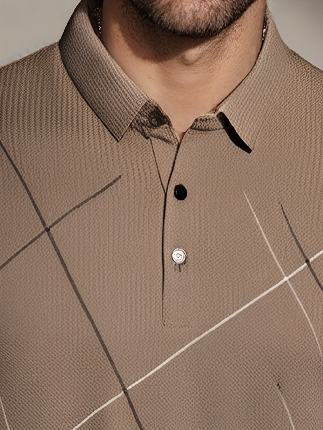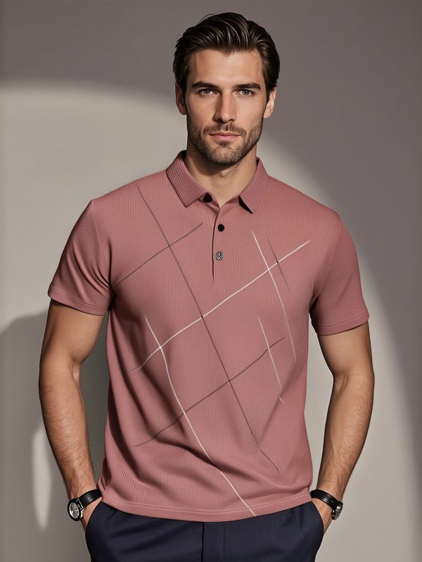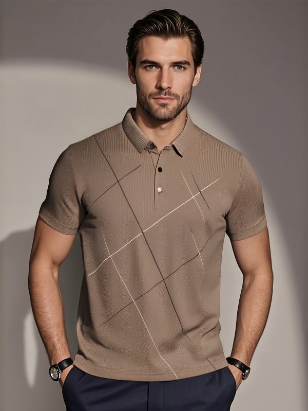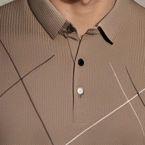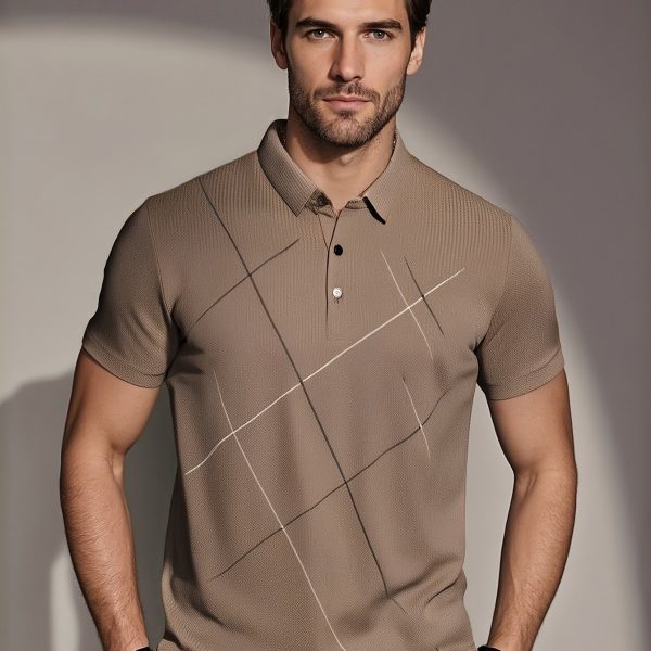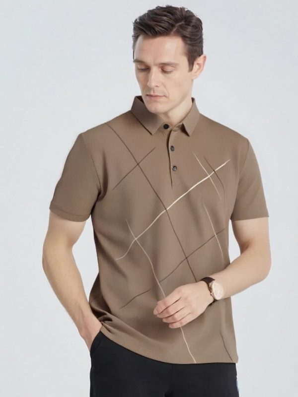 JOSFOND Men’s Summer Shirt – Breathable Ice Sliky Fiber Fabric, Loose Fit Casual Short Sleeve with Geometric Pattern, Elegant Brown Collar & Button Details for Office & Leisure Wear, Quality Tailoring, Weekend Outfit, Lightweight Material, Stylish Men