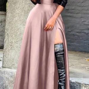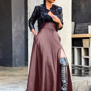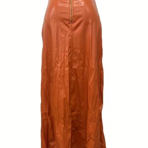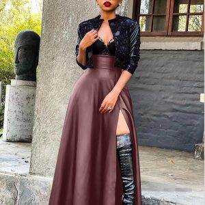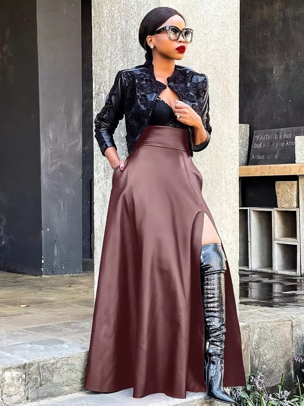 Be the first to review “Long Length High Waist PU Leather Split Skirt – Elegant, Micro Elastic, Slit Hem, Machine Washable, Solid Color – Perfect for Spring & Summer, Womens Casual Wear”
