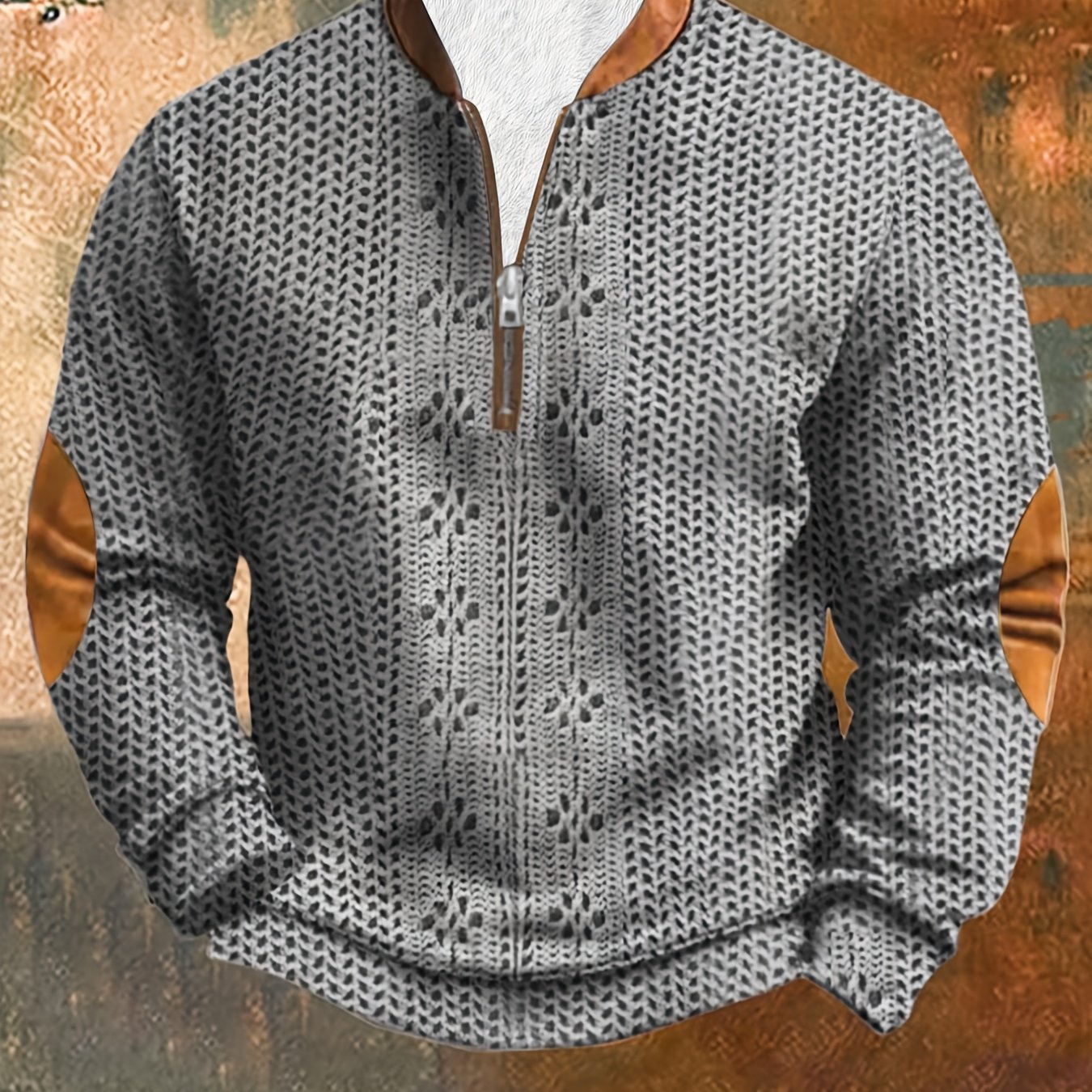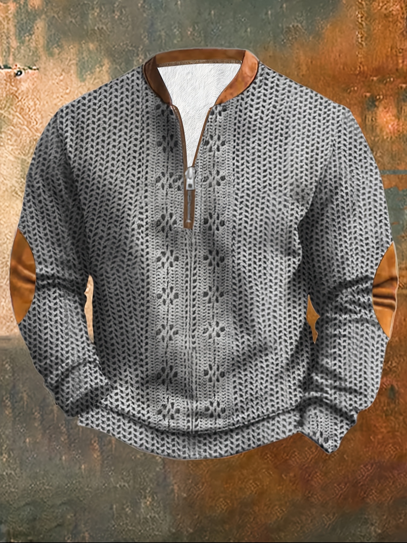 Long-sleeved Polo Shirt Zipper Design Men’S Casual Fashion Long-sleeved Polo Shirt With Zipper Design, Polyester Knitted Fabric, Elastane, Lapels, Solid Color, Micro-stretch, Slim Fit Autumn Knitted Top