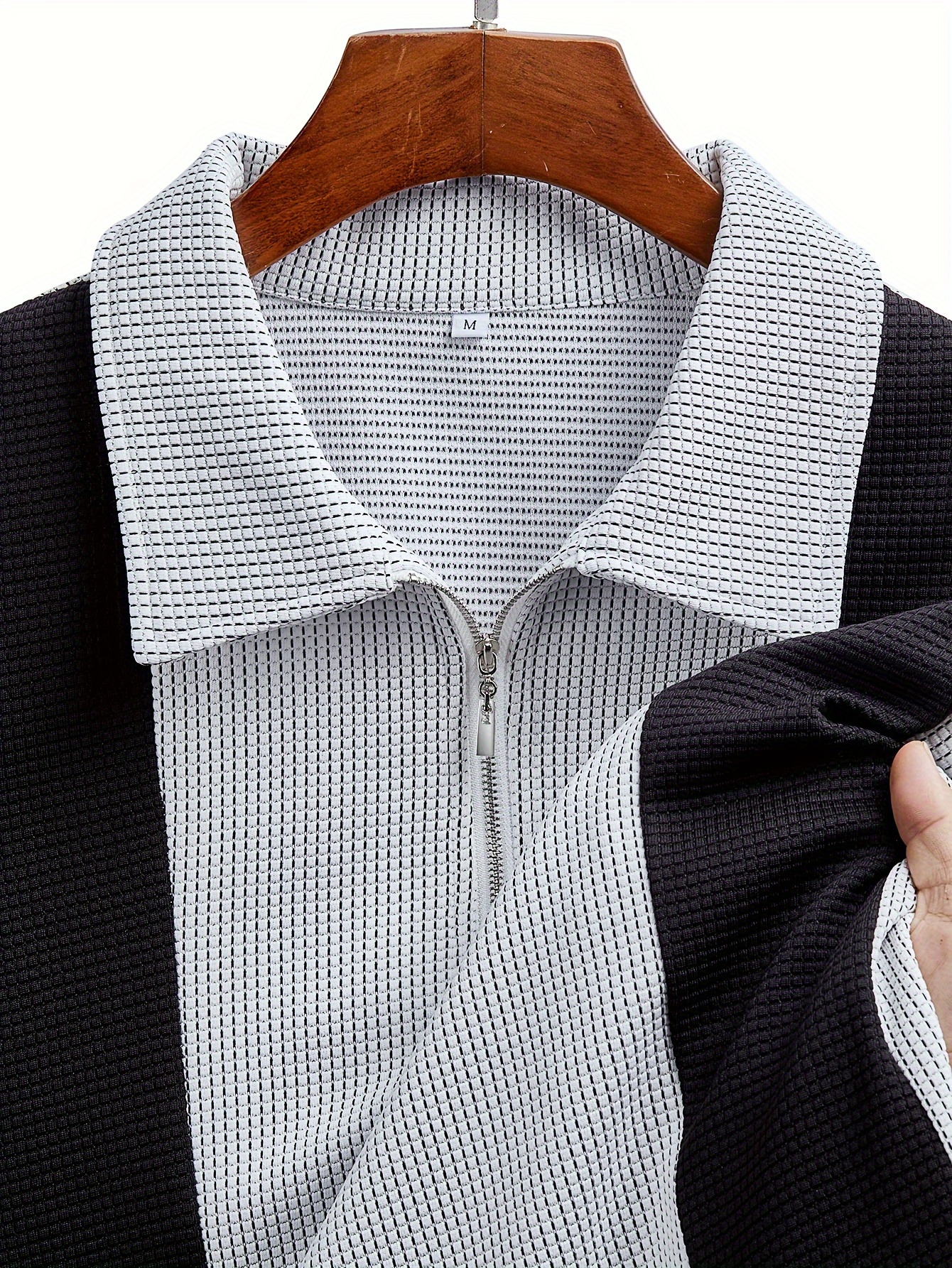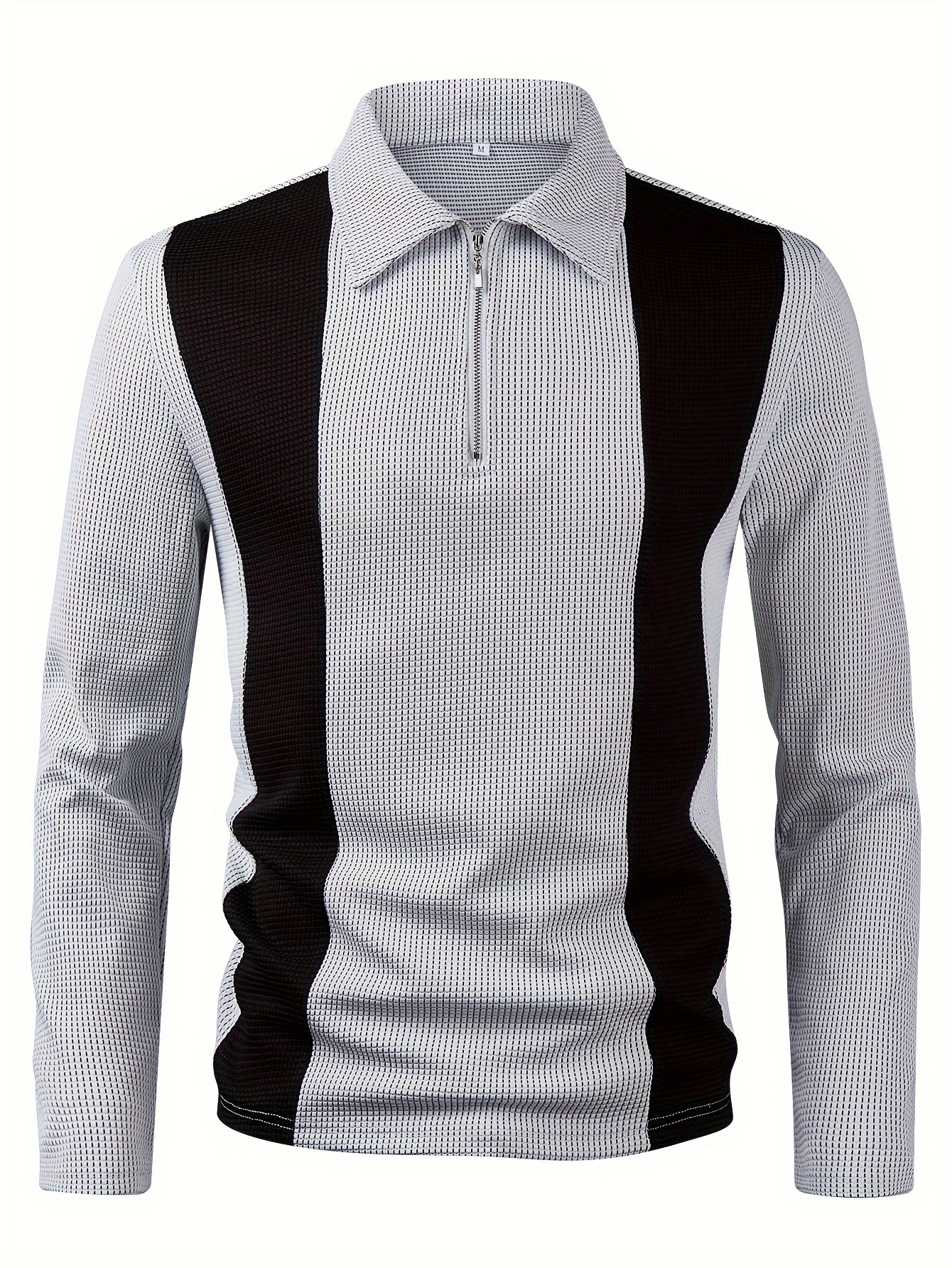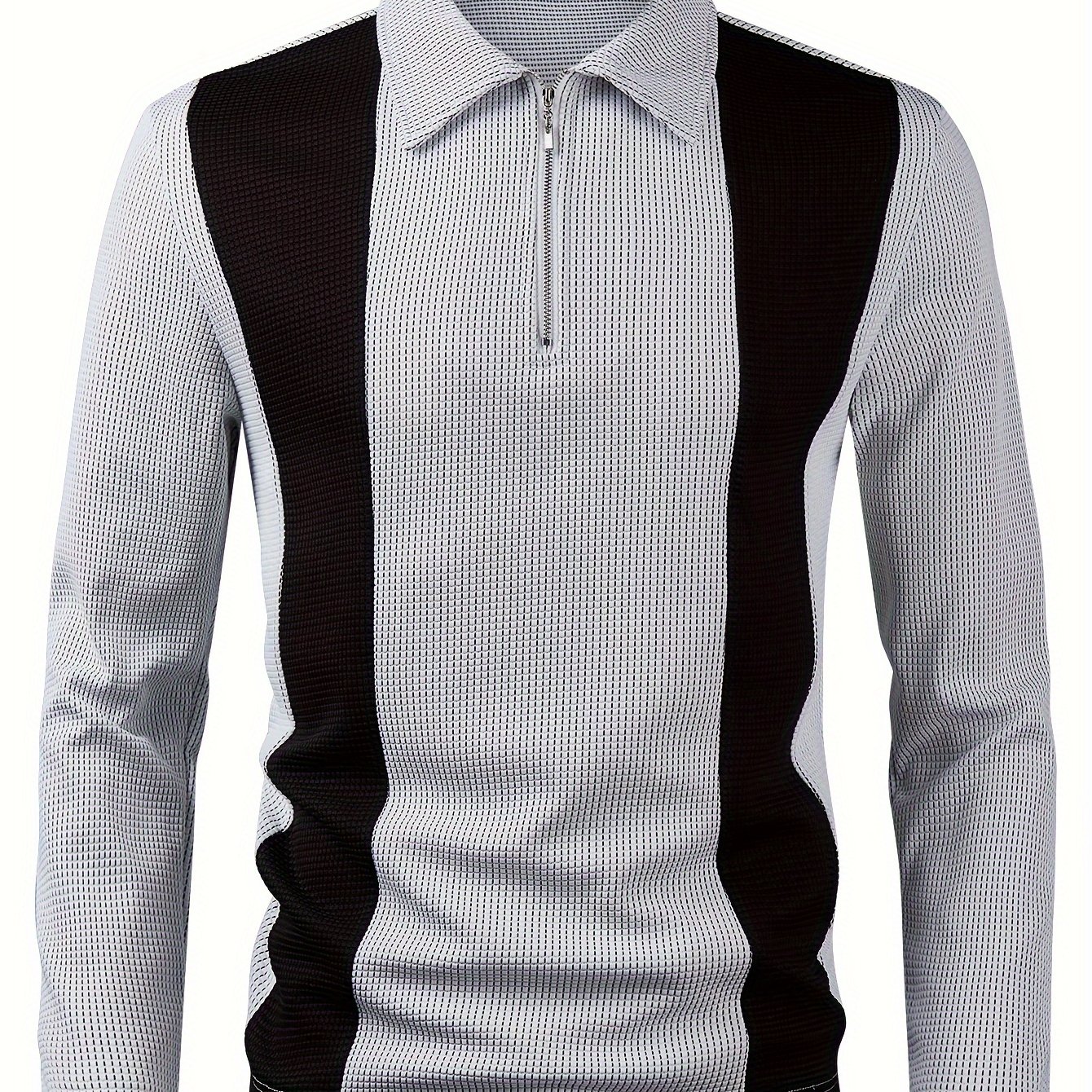 - Men’s Casual Color Block Shirt with Zipper – Long Sleeve, Textured Fabric for Fall Outdoor Wear
