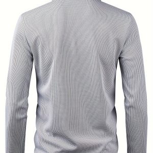 Men’s Casual Color Block Shirt with Zipper – Long Sleeve, Textured Fabric for Fall Outdoor Wear