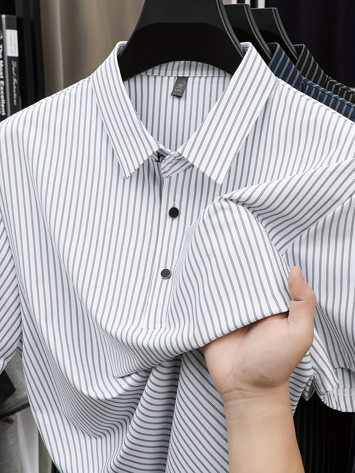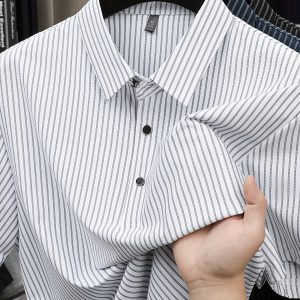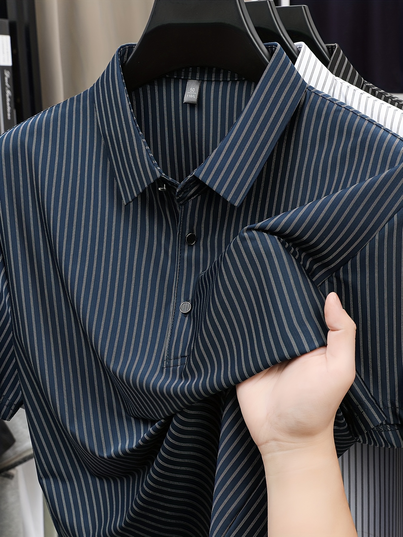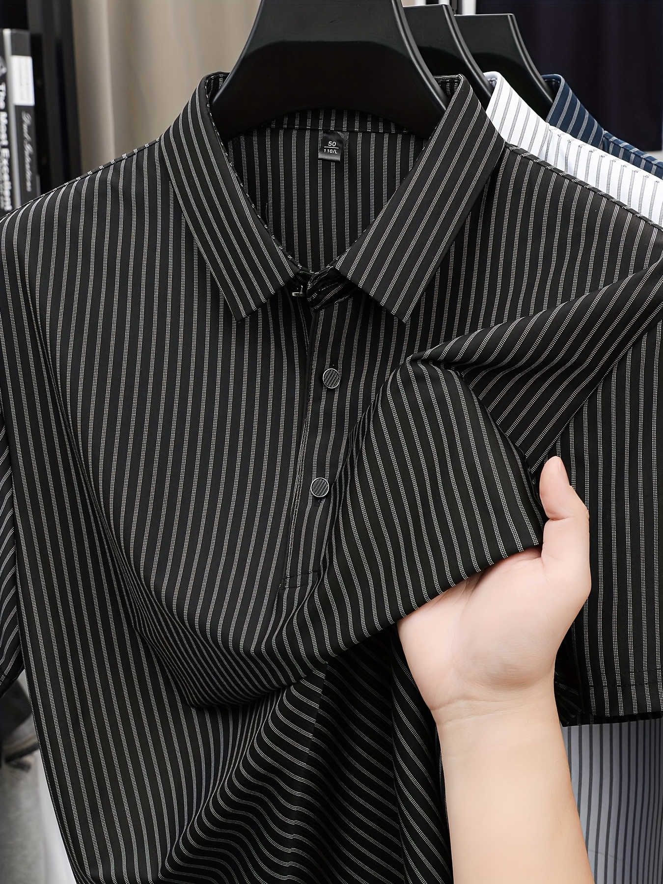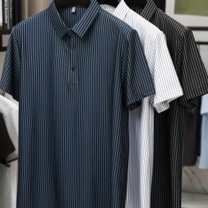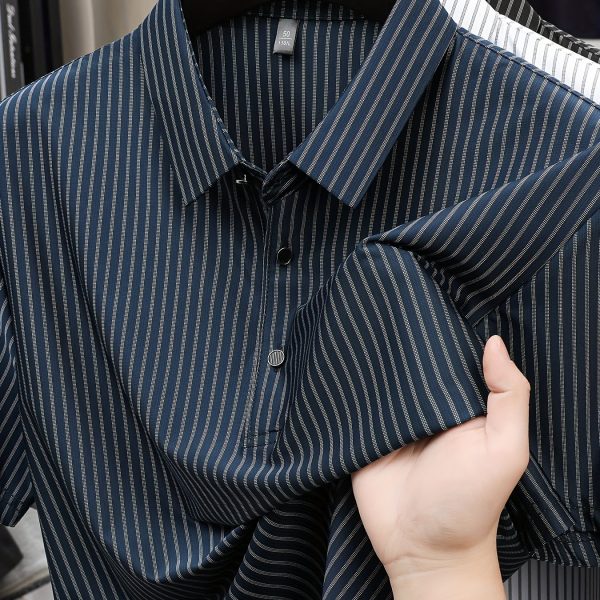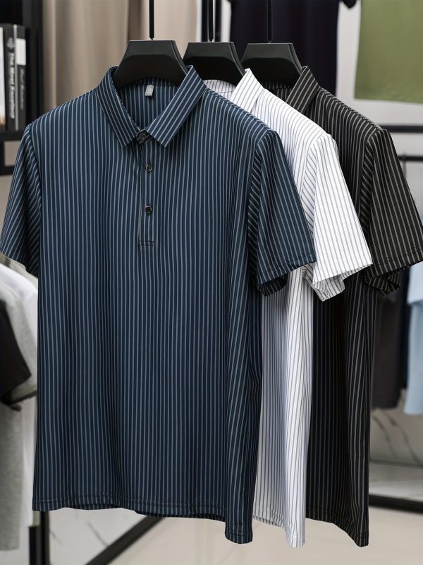 Men’S Casual Striped Short Sleeve Polo Shirt – Summer Fashion, Button-Up Design, Non-Stretch Fabric, Ideal for Casual Attire, Summer Casual Wear | Classic Polo Style | Buttonup Shirt