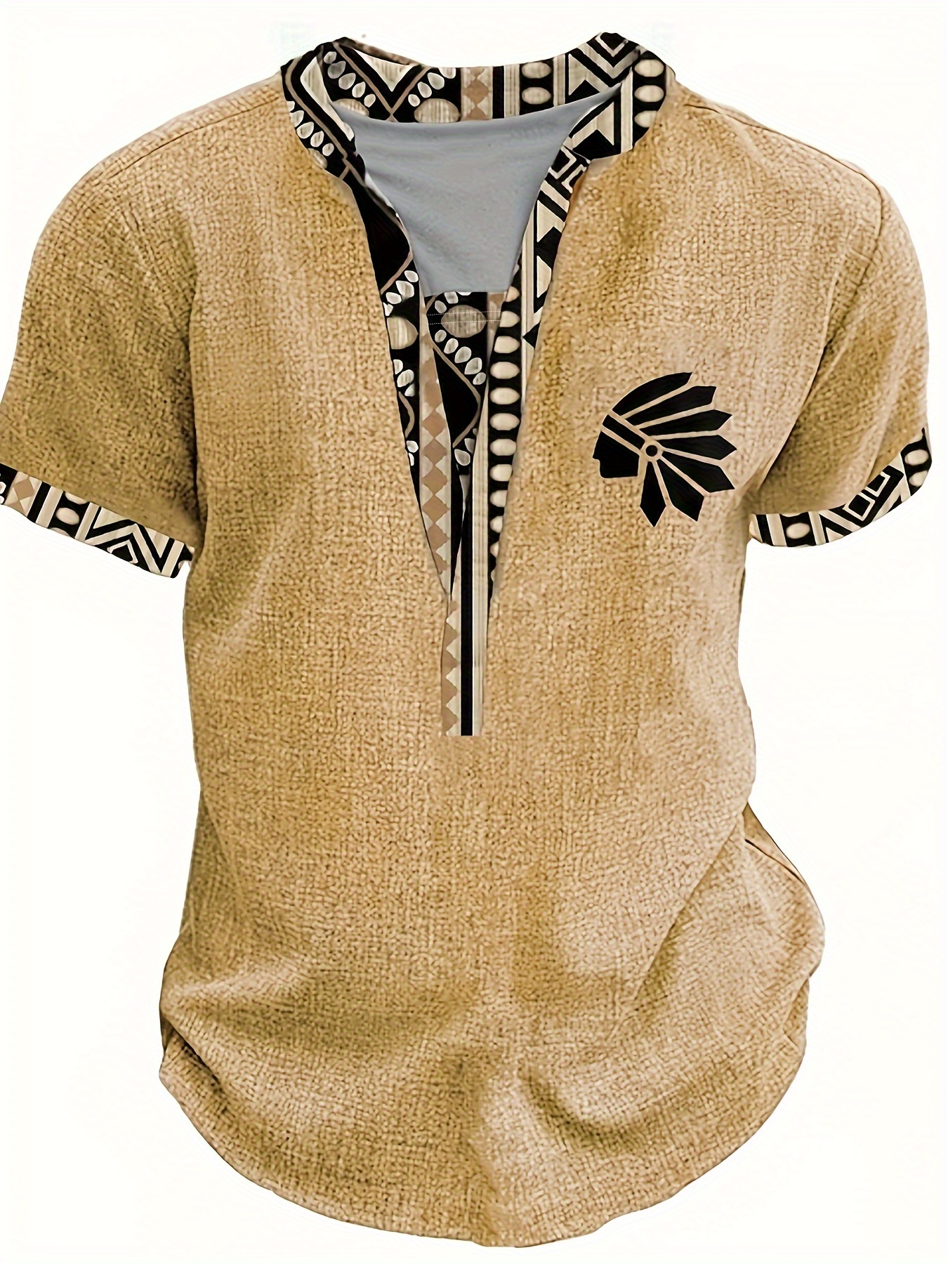 - Men’S Short-Sleeved POLO Shirt, Geometric Pattern, Indian Style Print, Comfortable And Slightly Elastic Fabric, Suitable for Daily Wear, Sports, And Vacation Travel