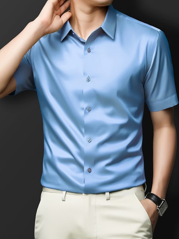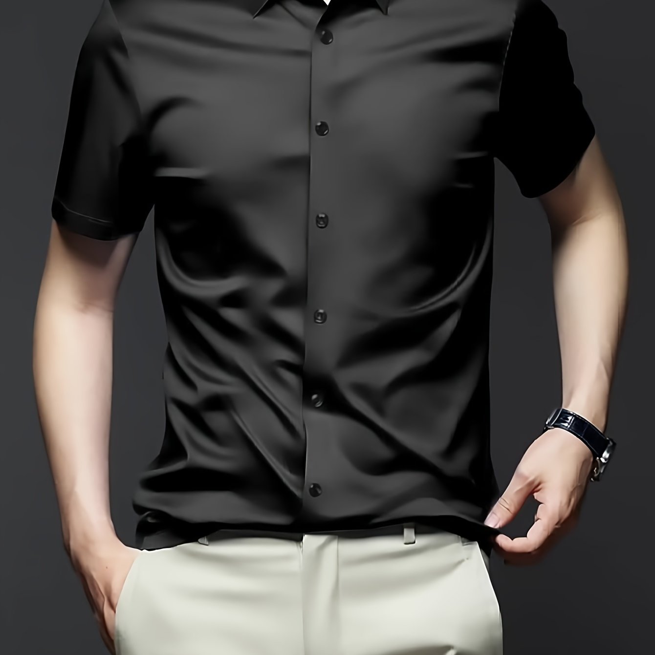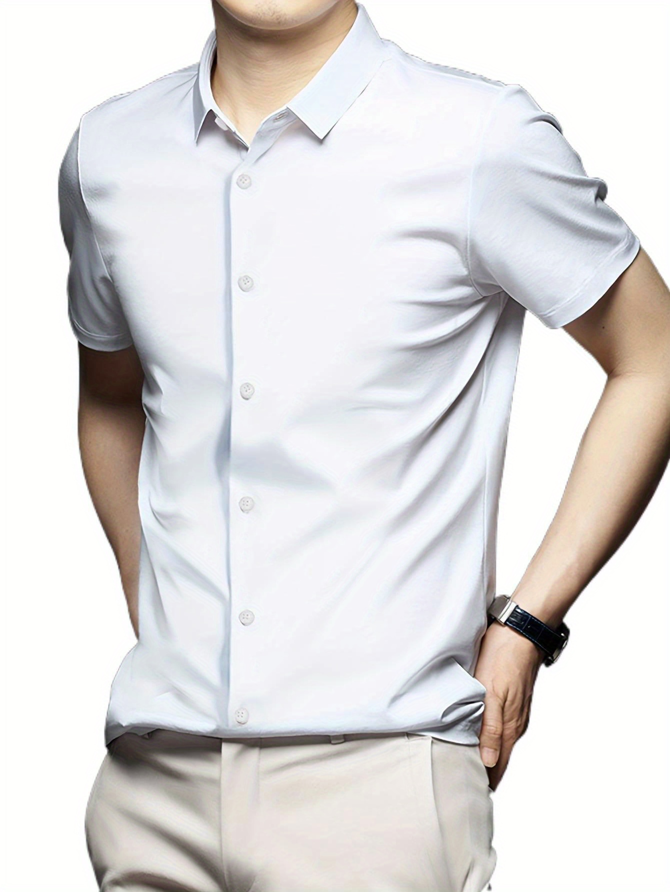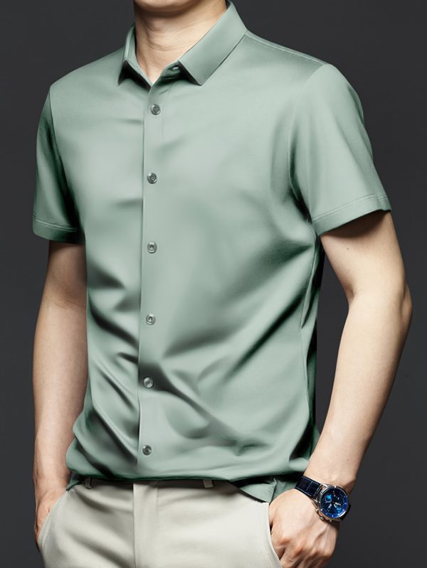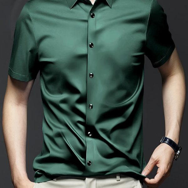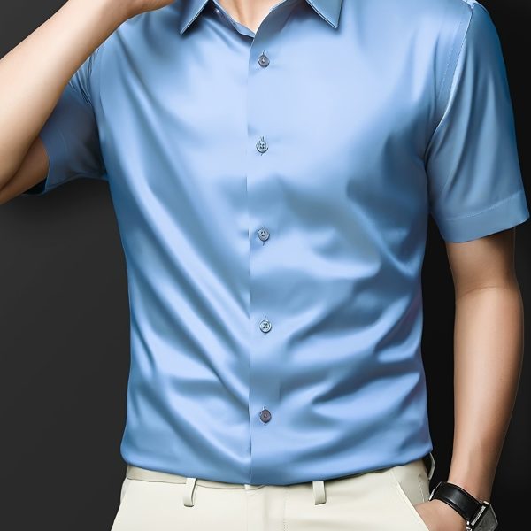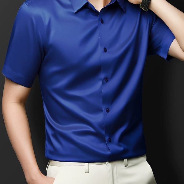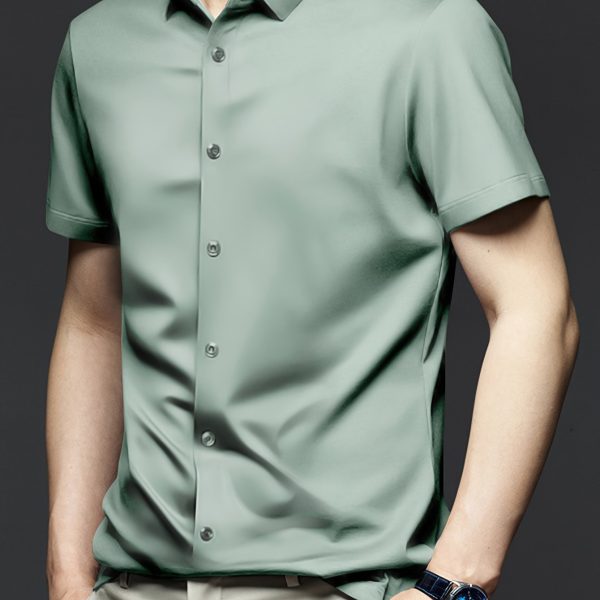 Summer Men’S Formal Short-Sleeve Shirt, Stretchy, Smooth, Wrinkle-Free, Suitable for Business And Casual Wear, Men’S Cardigan Shirt.