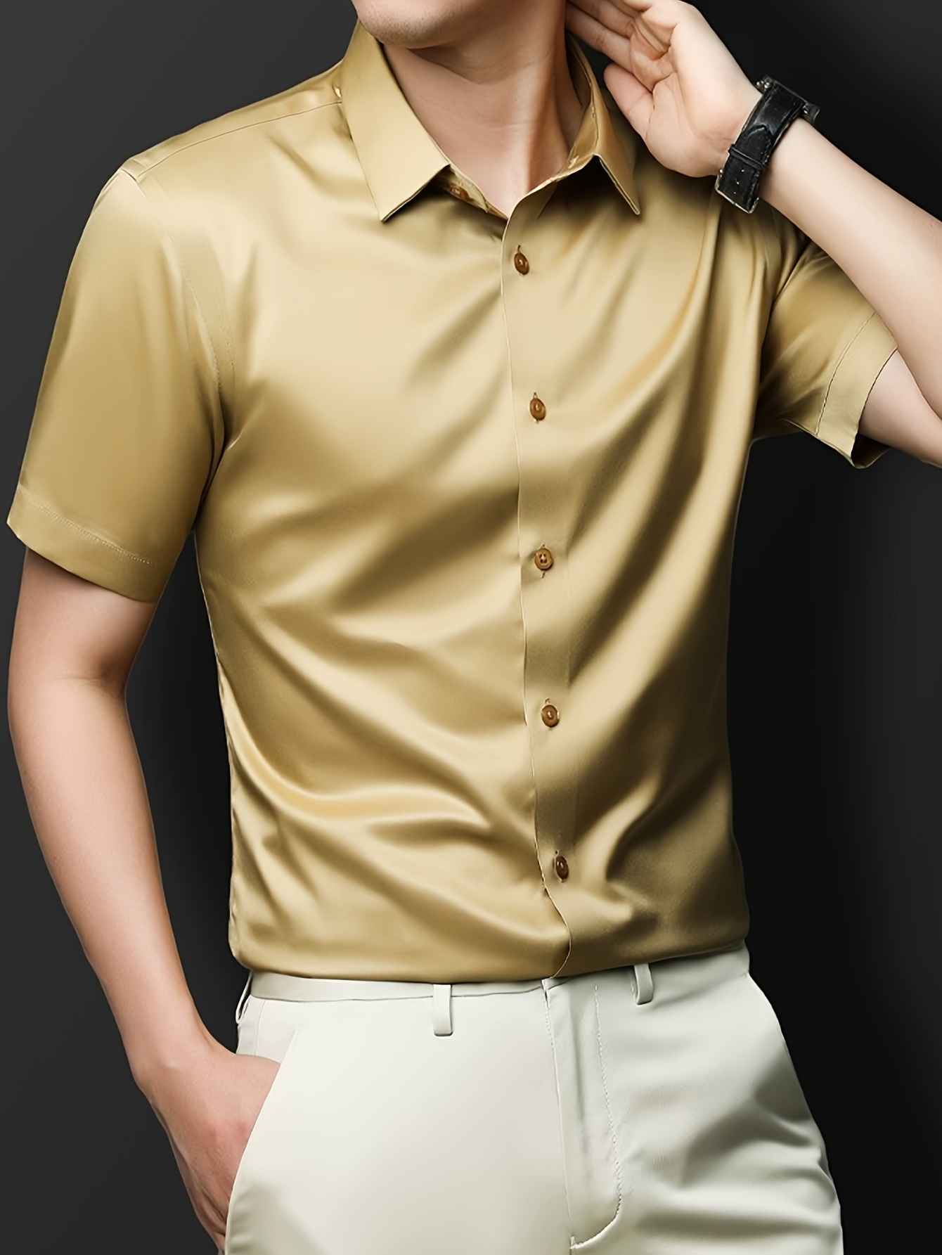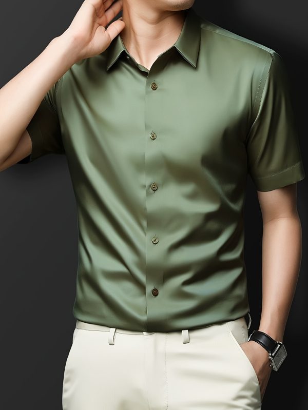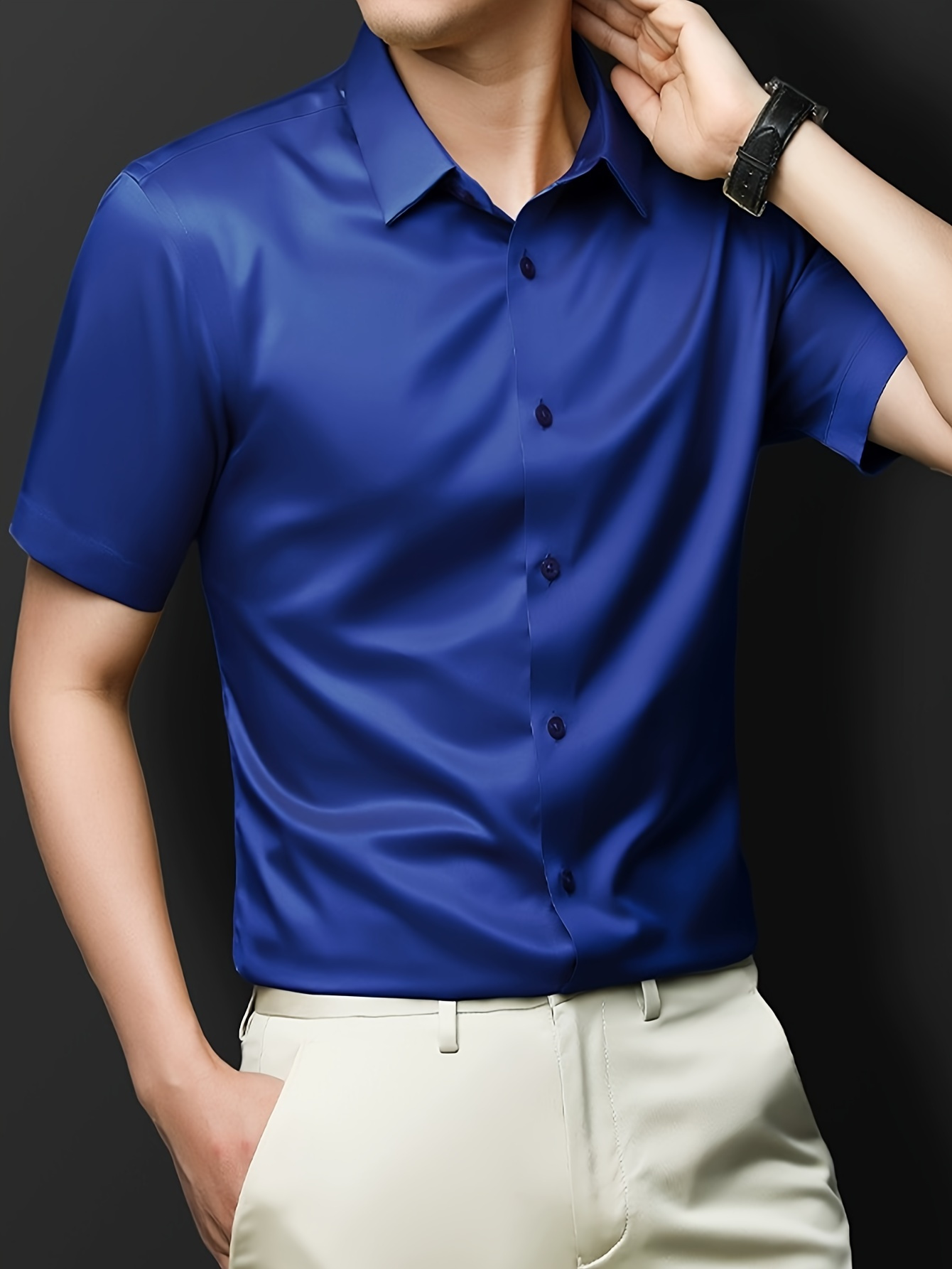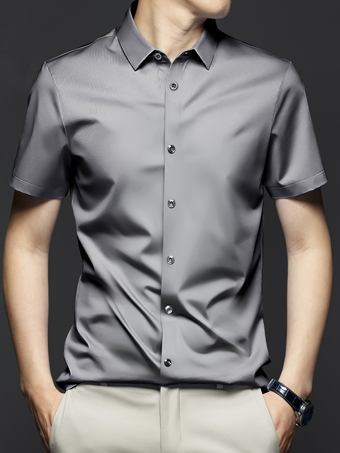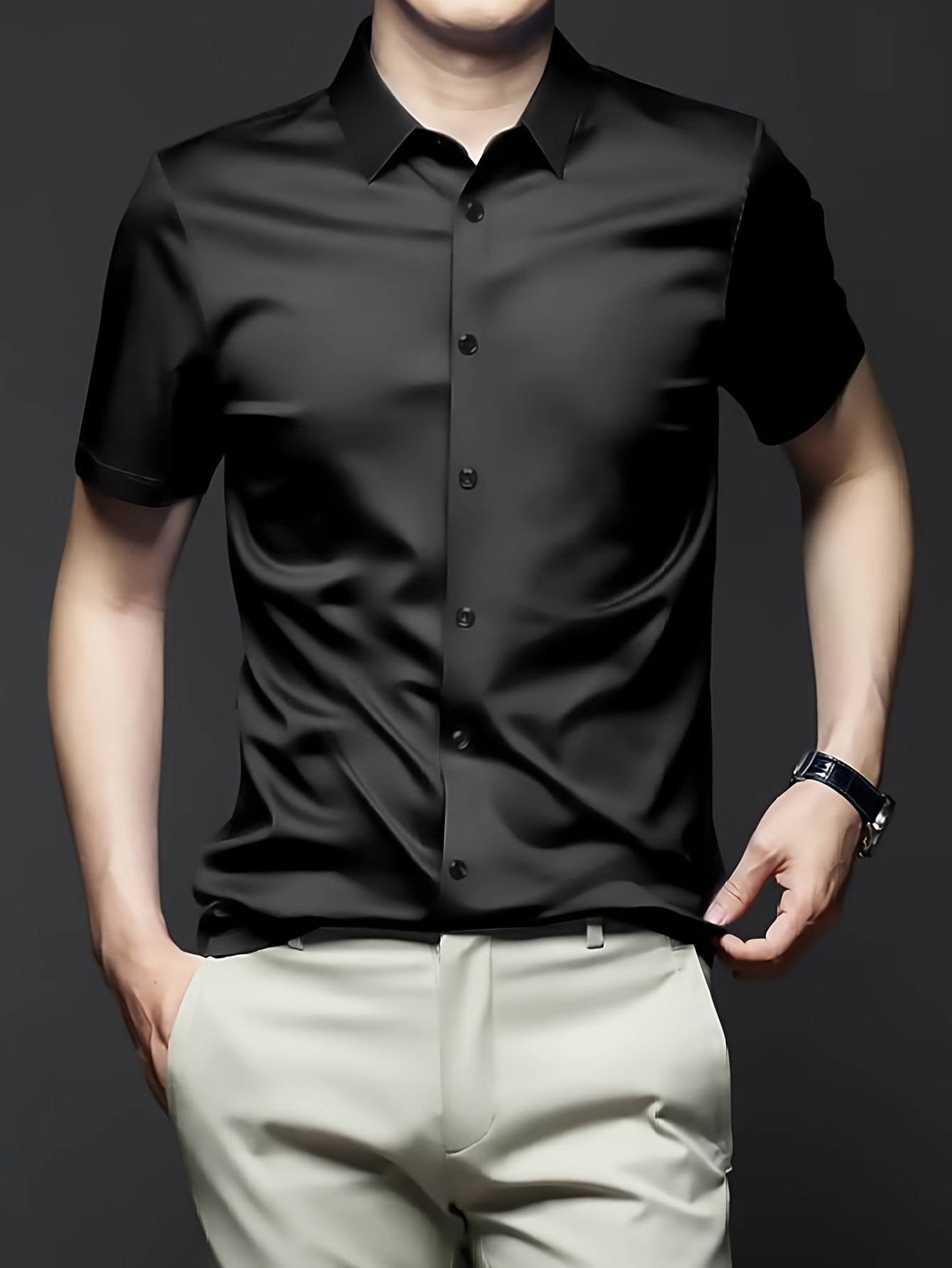 Summer Men’S Formal Short-Sleeve Shirt, Stretchy, Smooth, Wrinkle-Free, Suitable for Business And Casual Wear, Men’S Cardigan Shirt.