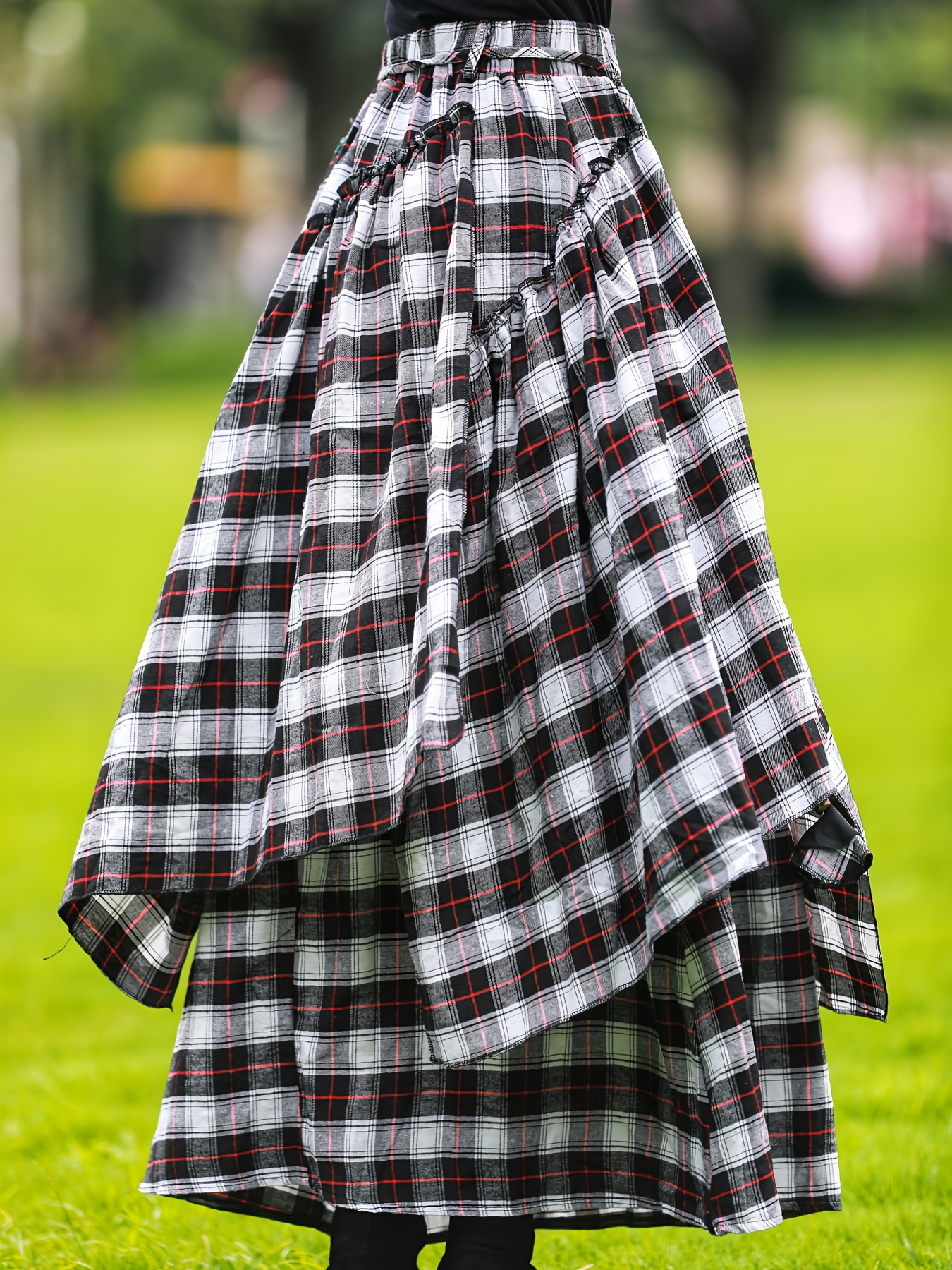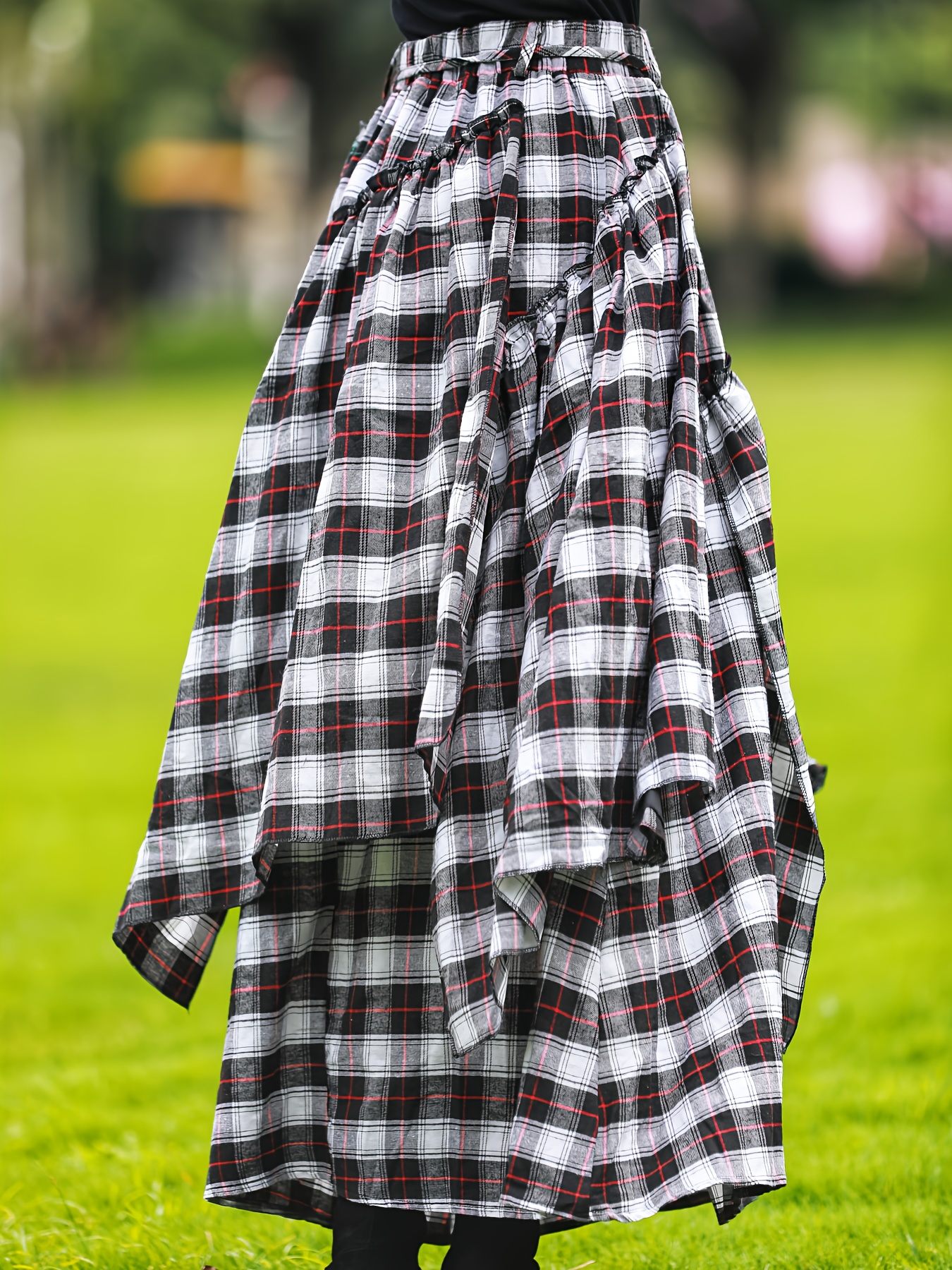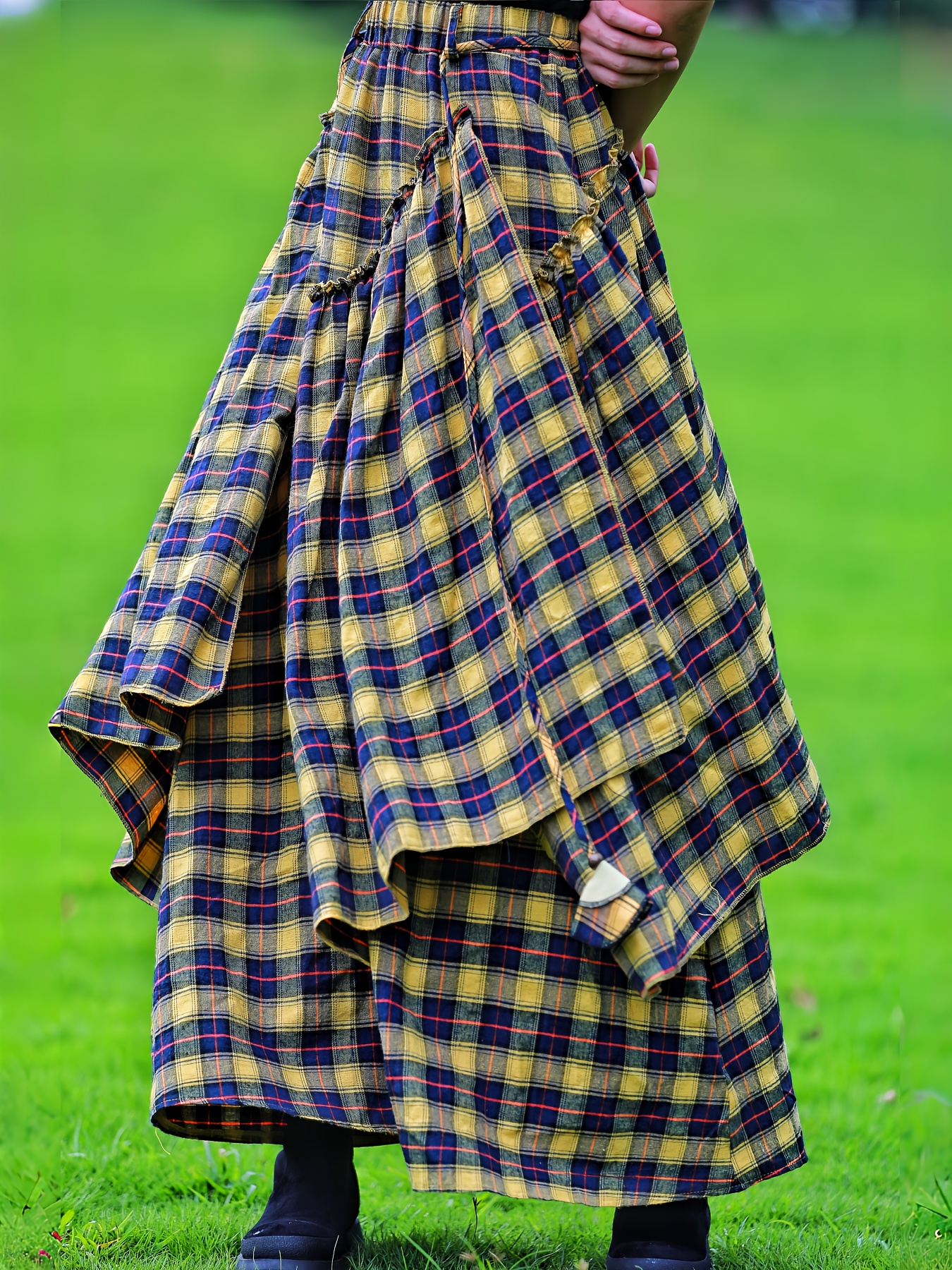 Victorian Gothic Handmade Tassel Plaid Skirt 2025 | Asymmetrical Pleated High-Waisted Beach Skirt | Elastic Waist Multi-Layer Vacation Dress | Sweet Style Women’S Gift for Spring and Summer
