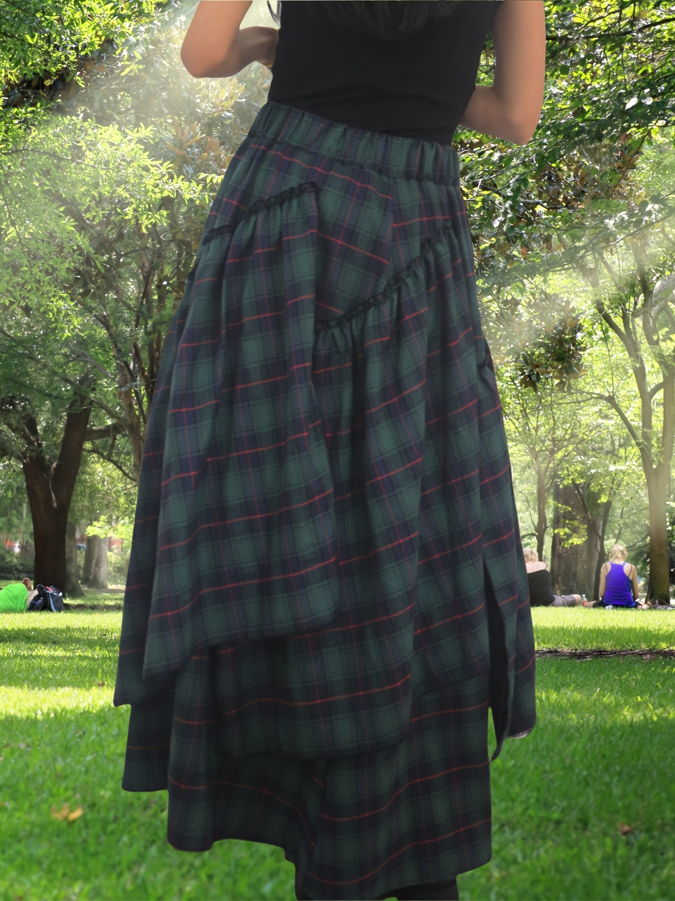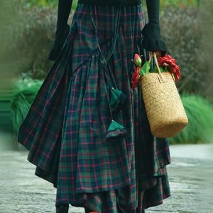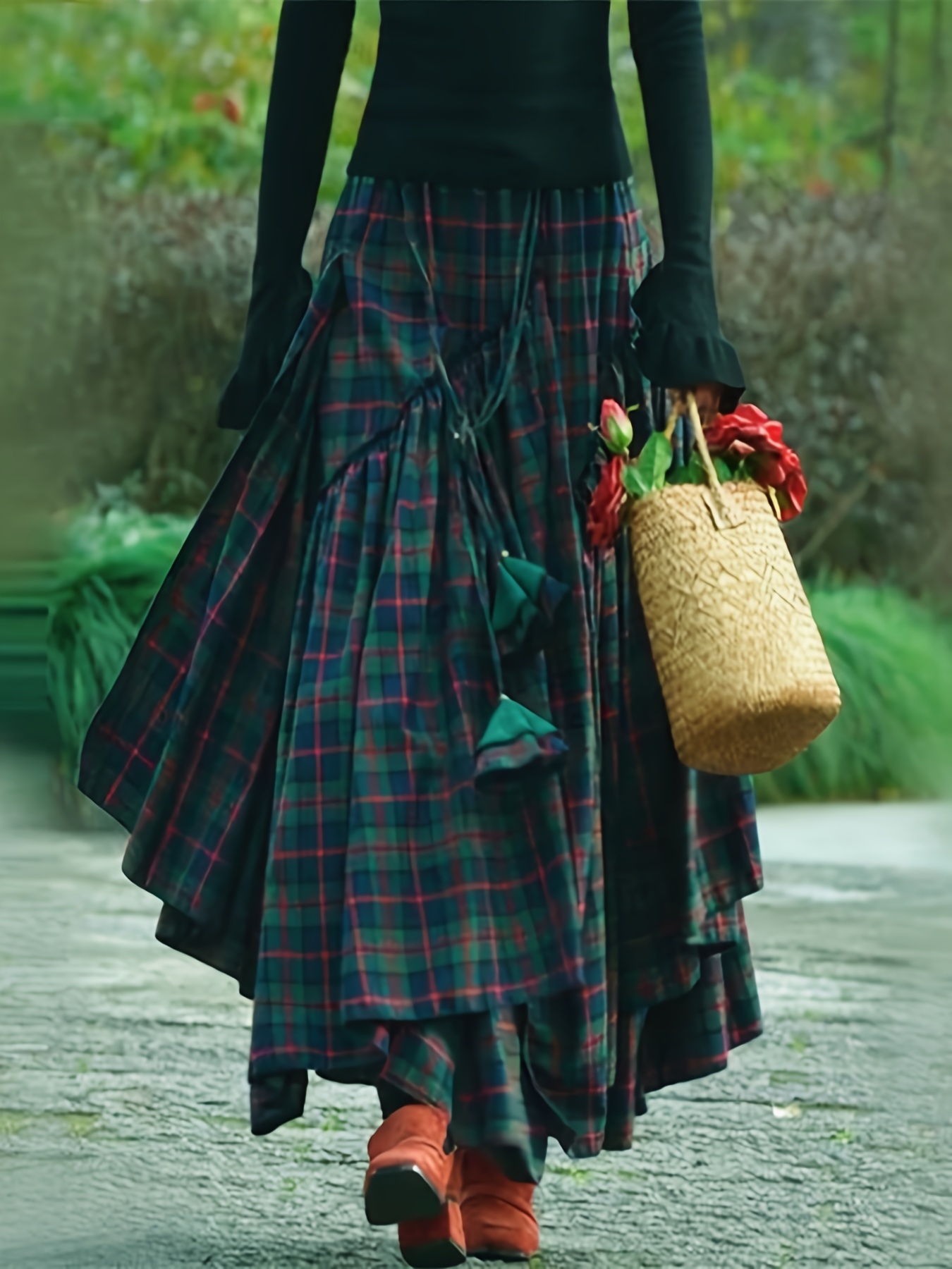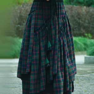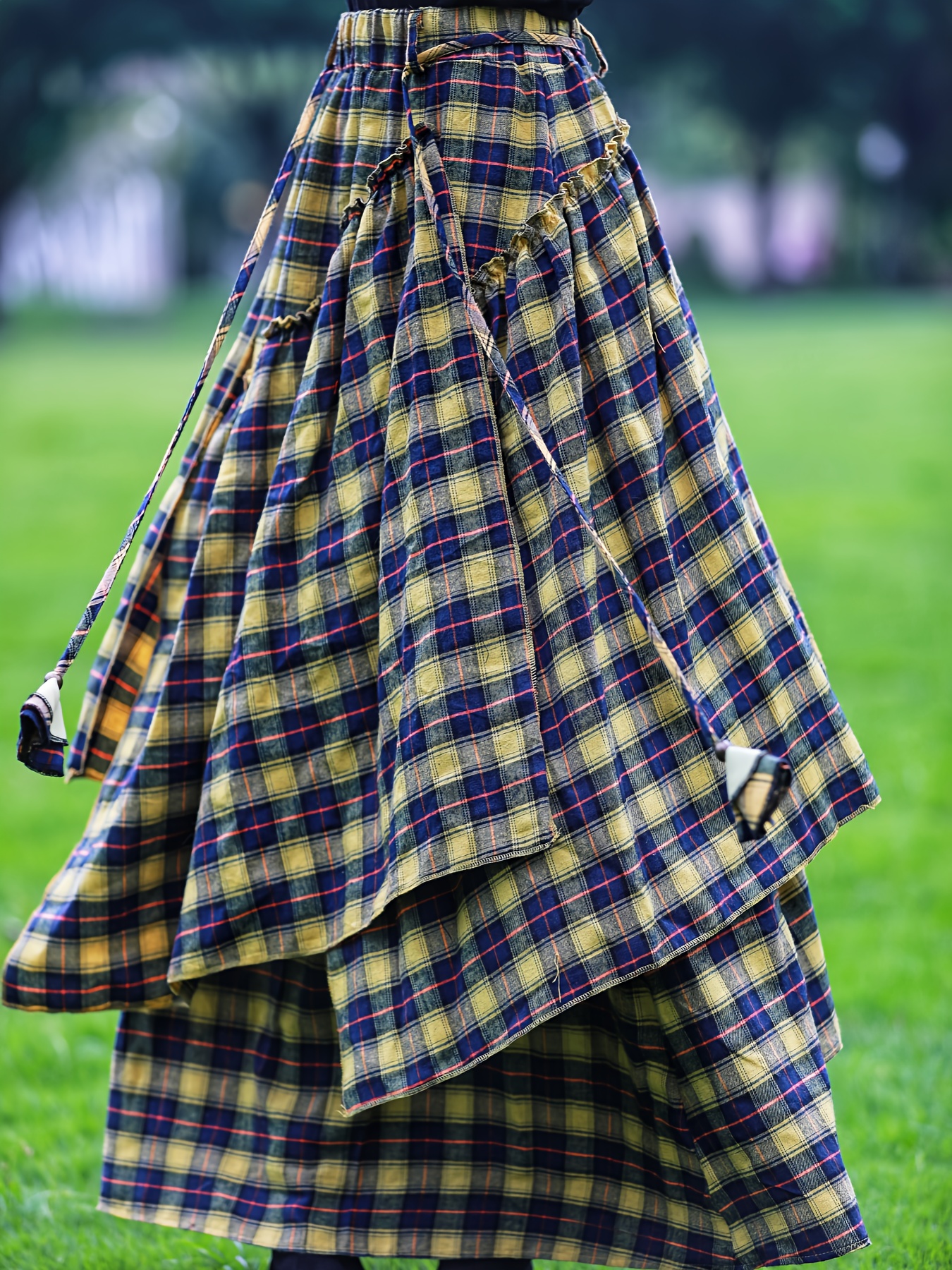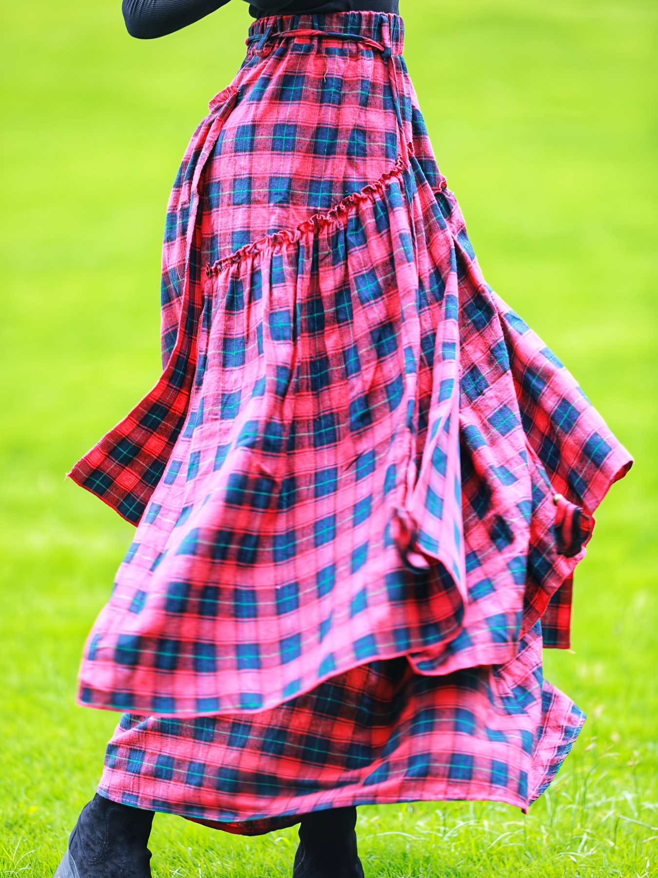 Victorian Gothic Handmade Tassel Plaid Skirt 2025 | Asymmetrical Pleated High-Waisted Beach Skirt | Elastic Waist Multi-Layer Vacation Dress | Sweet Style Women’S Gift for Spring and Summer