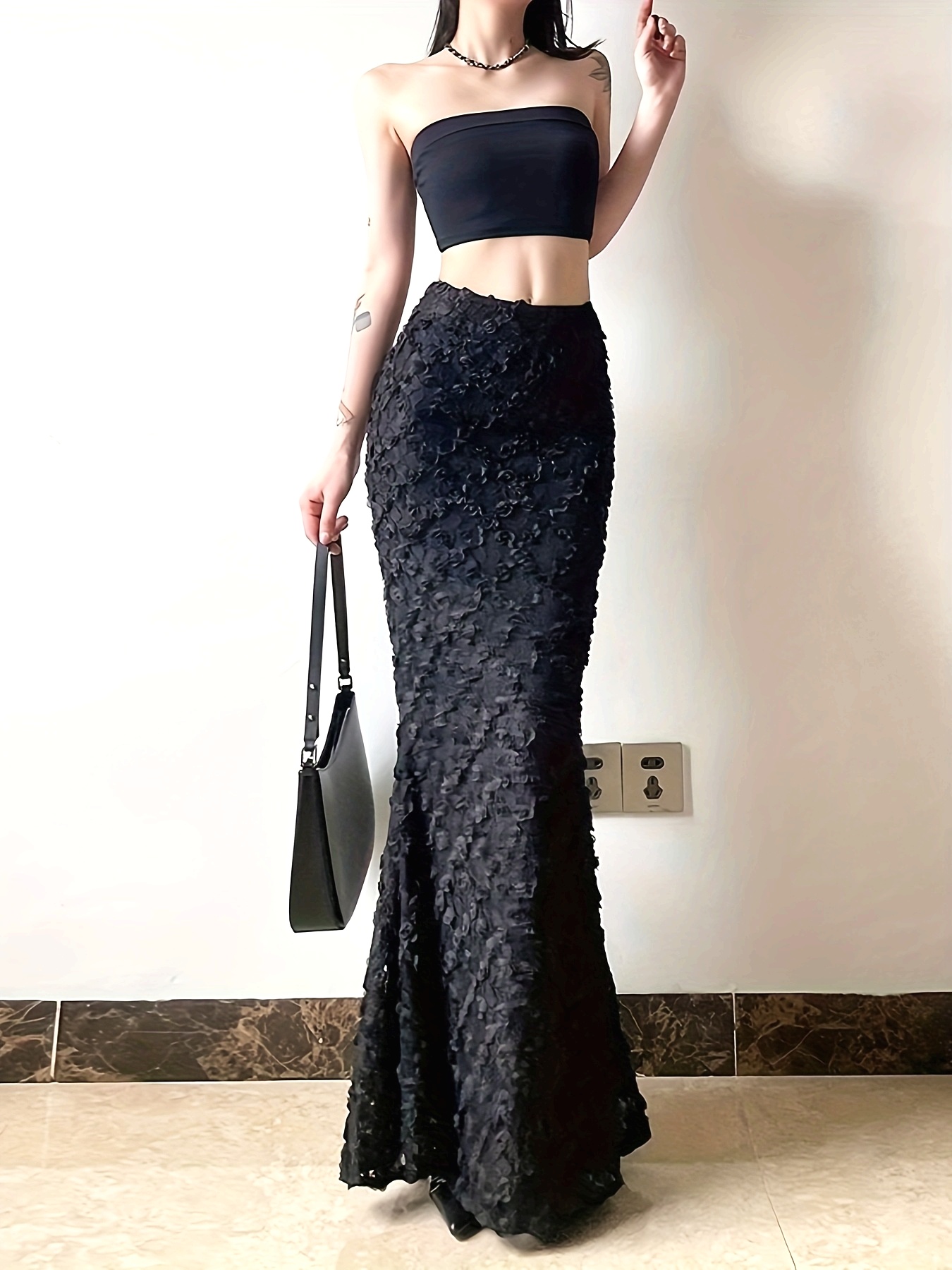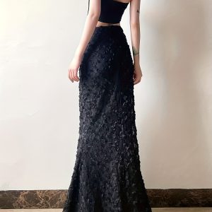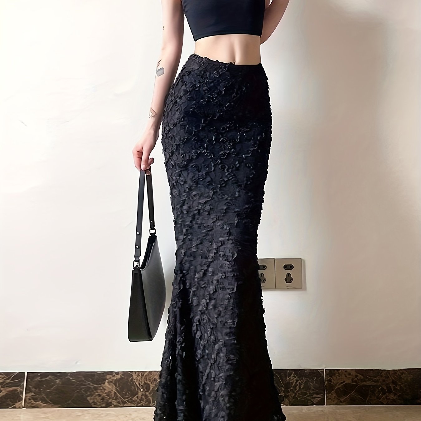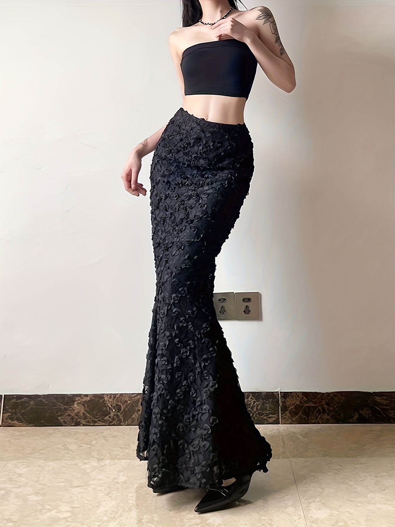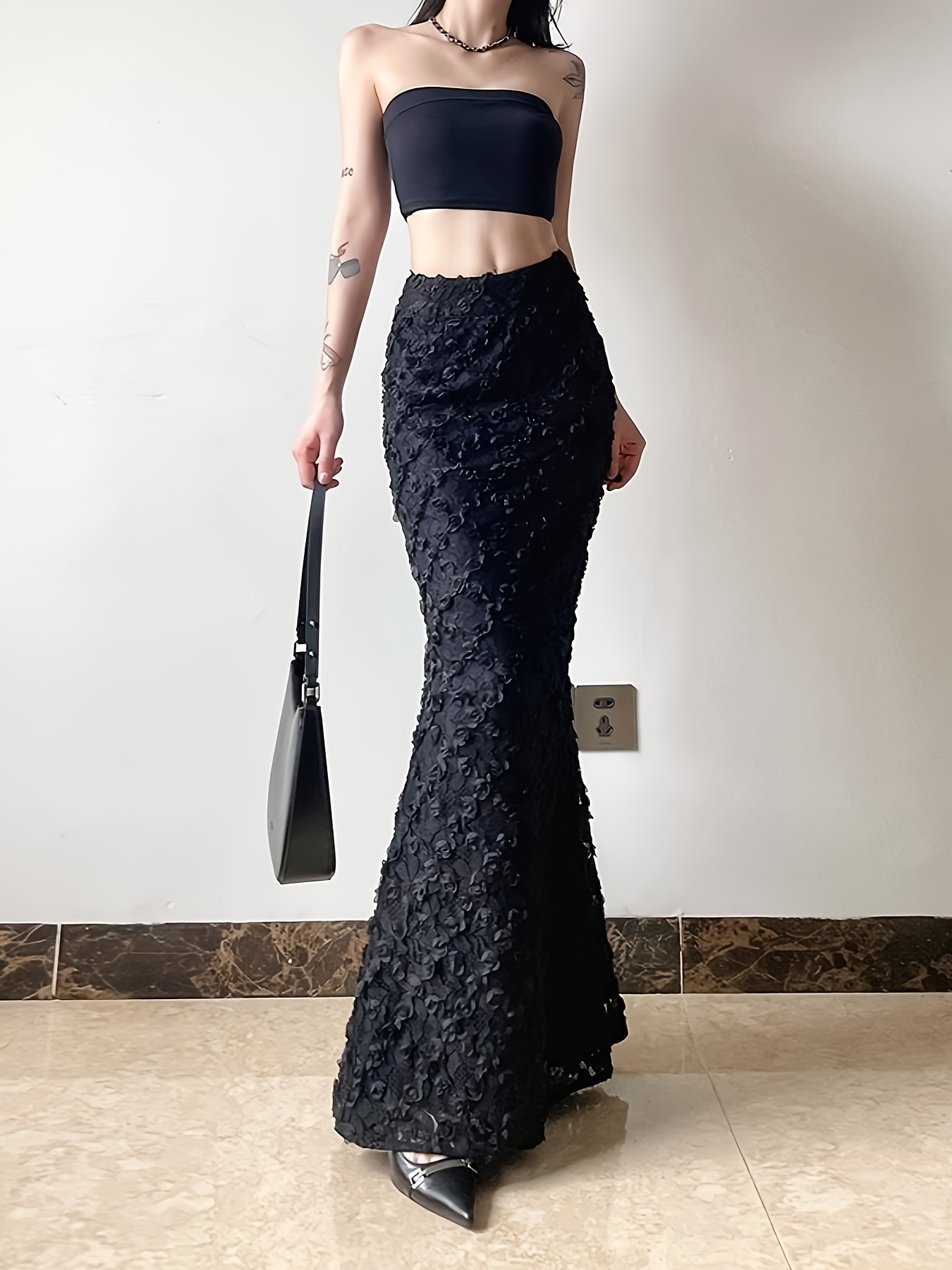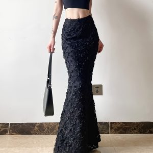 - Women’S Black Textured Floral Mermaid Skirt – High-Waisted, Bodycon, Summer Fashion, Elegant and Design, Elegant Attire|Floral Pattern Skirt|Sleek Fit, Mermaid Skirt