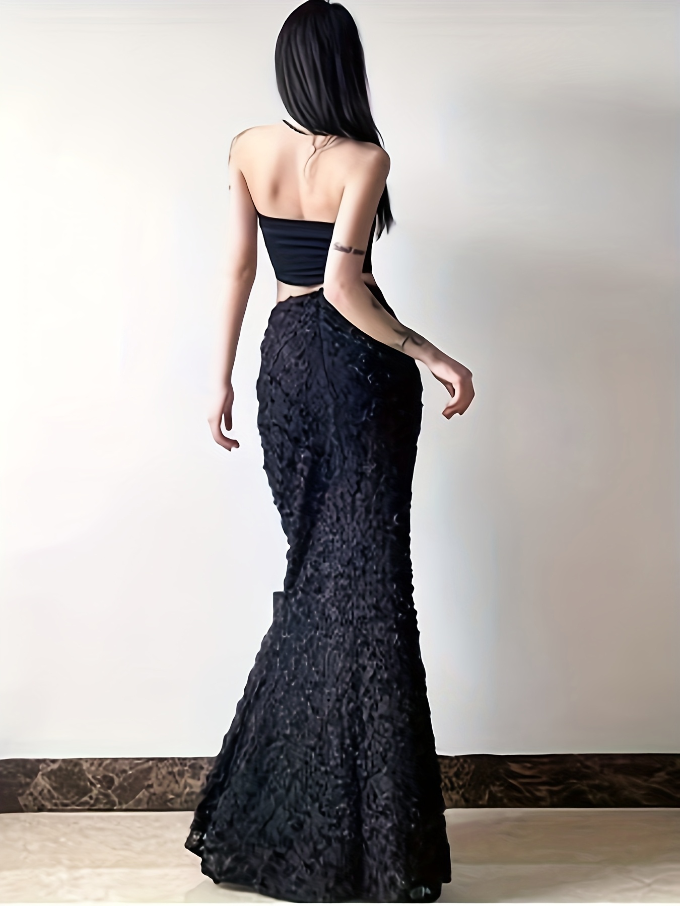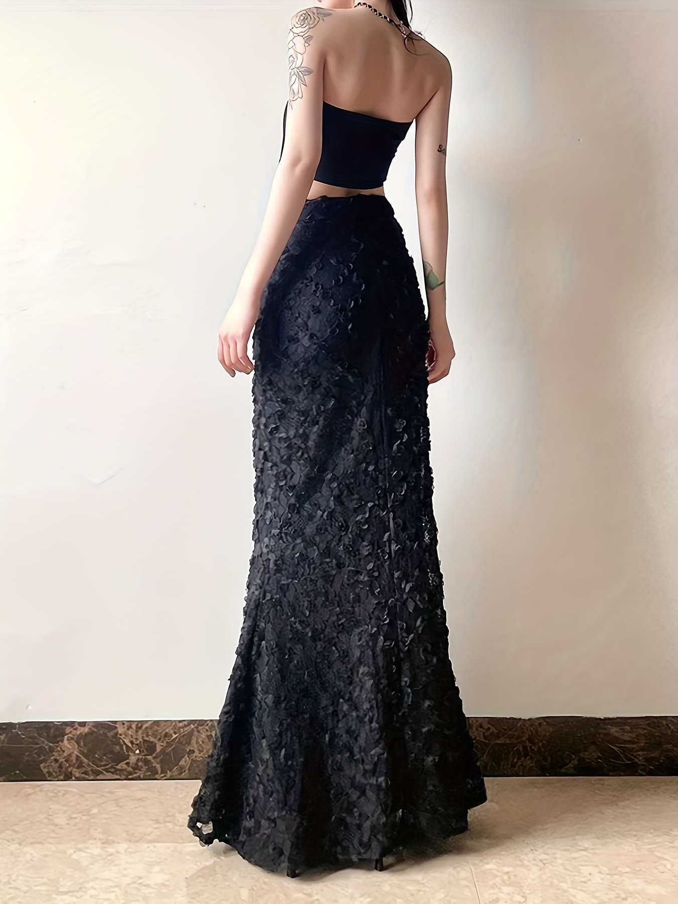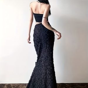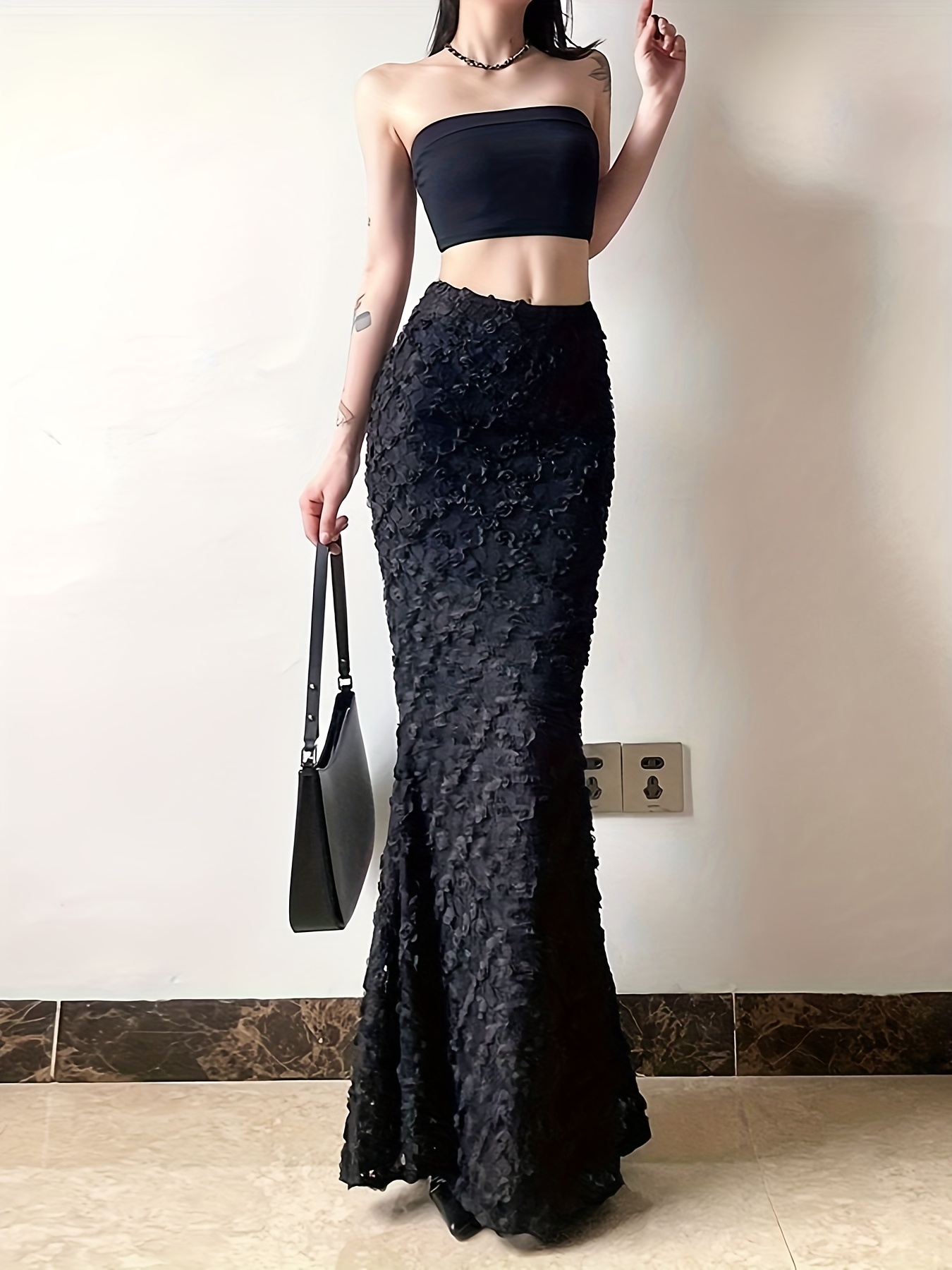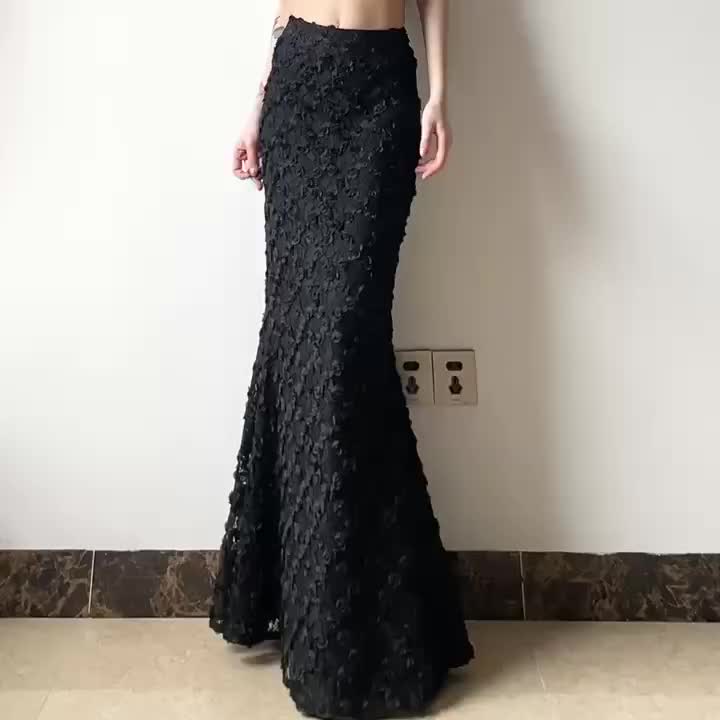 - Women’S Black Textured Floral Mermaid Skirt – High-Waisted, Bodycon, Summer Fashion, Elegant and Design, Elegant Attire|Floral Pattern Skirt|Sleek Fit, Mermaid Skirt
