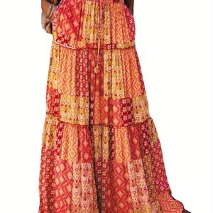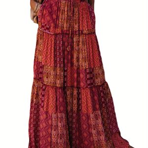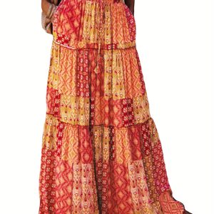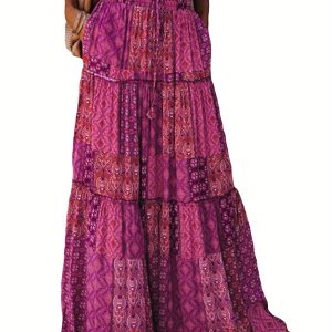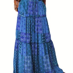 Be the first to review “Women’s Bohemian High-Waist A-Line Tiered Skirt with Pockets – Vintage Floral Print, Lightweight Polyester, Ruffled Hem, Ideal for All Seasons, High Waisted Skirt”