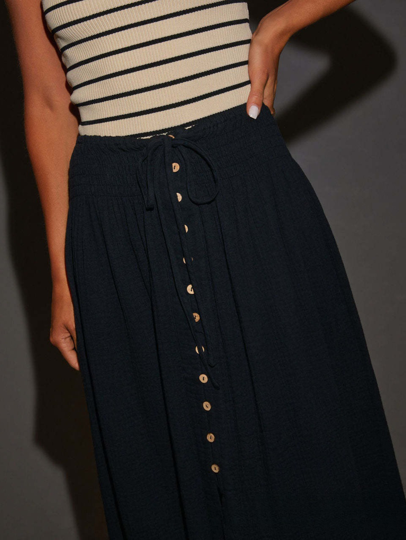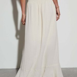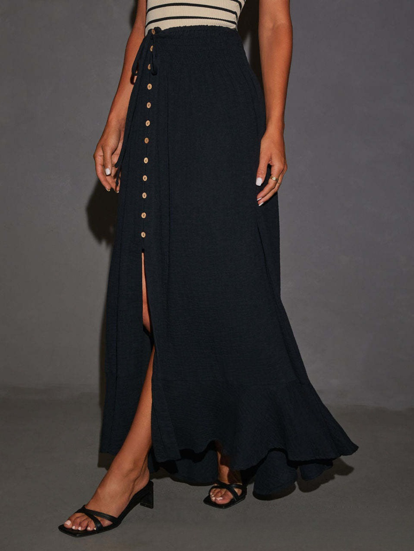 - Women’S Elastic Tie Waist Button Maxi Skirts Casual Loose Flowy Swing Slit Front Dress