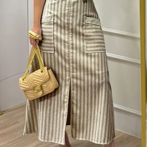 Be the first to review “Women’s Elegant High-Waisted Midi Skirt – Flowy, White & Beige Striped, with Pockets, Versatile Summer Skirt” Cancel reply