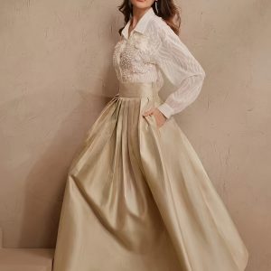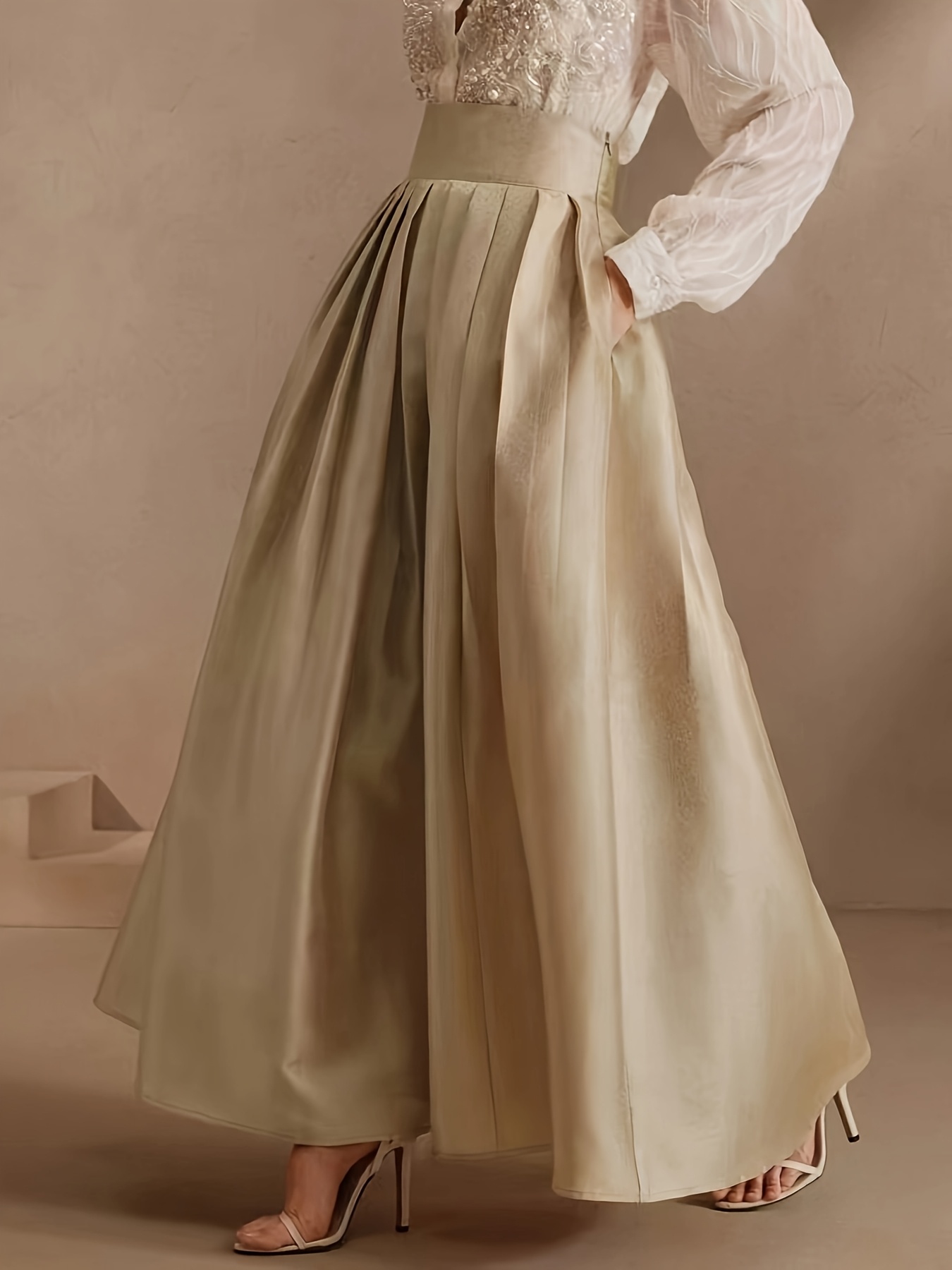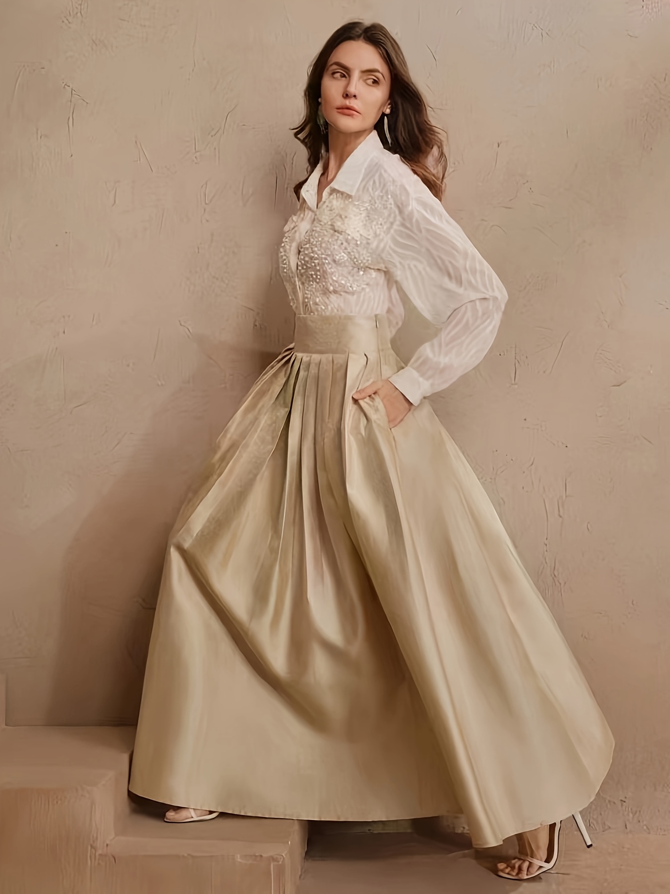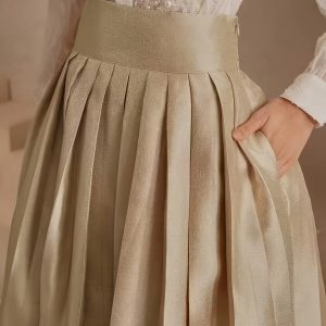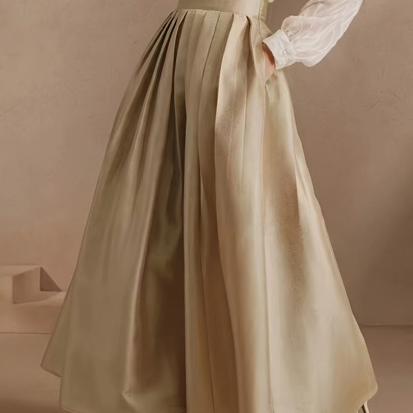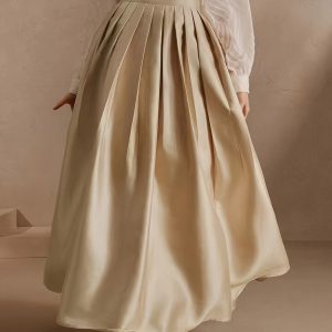 Women’S Elegant High-Waisted Pleated Midi Skirt – Beige, Long Flowing Design with Ruffled Hem, Perfect for Summer, Versatile Fashion|Ruffled Hem Skirt|Sleek Appearance