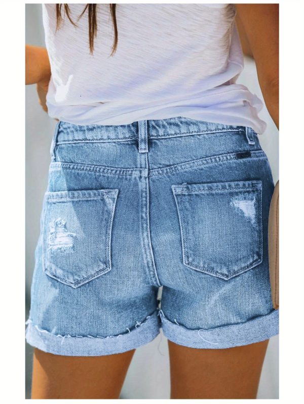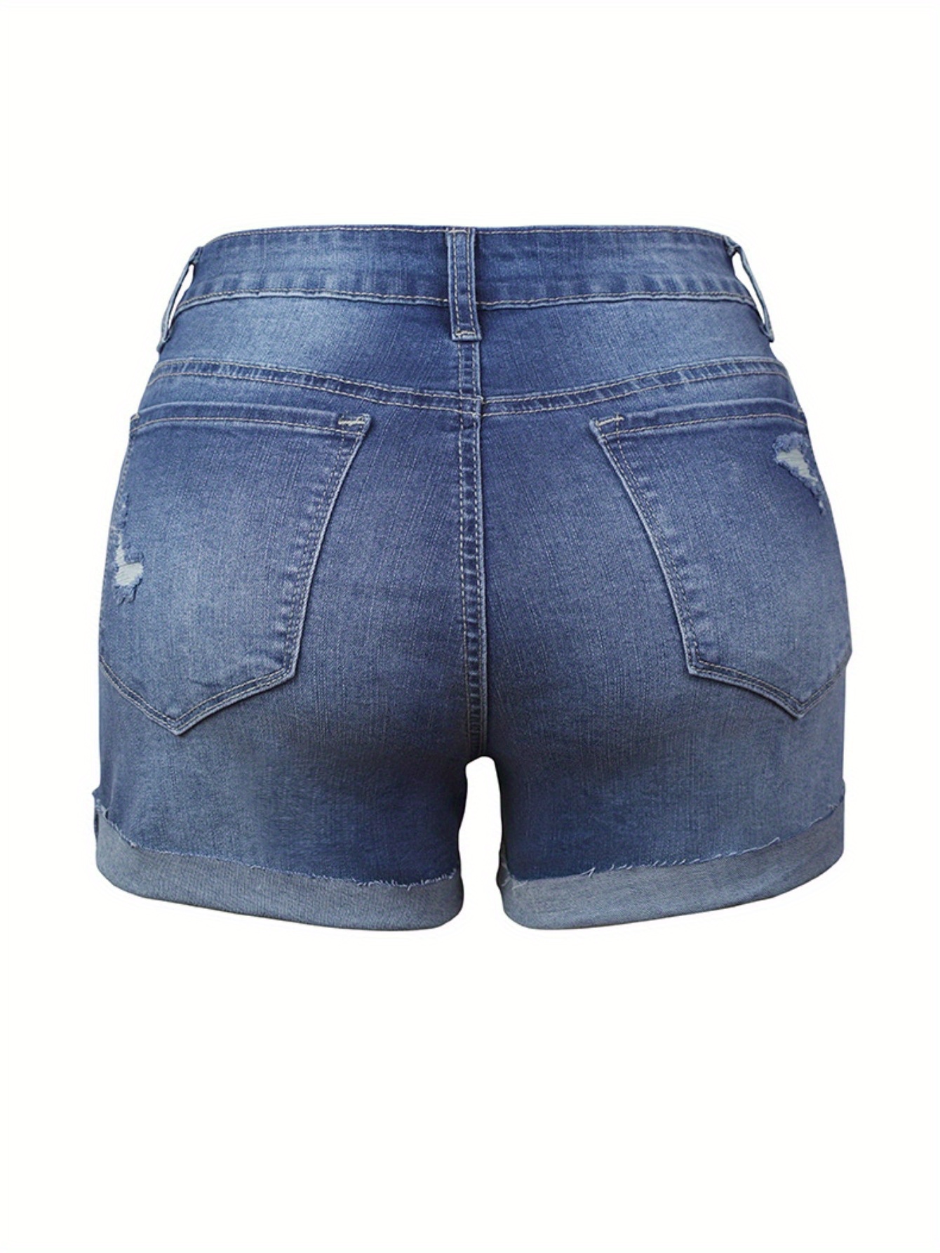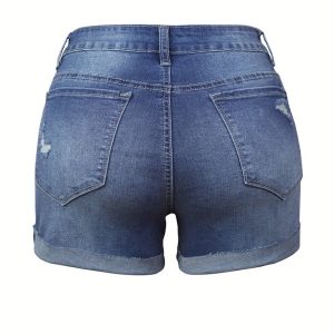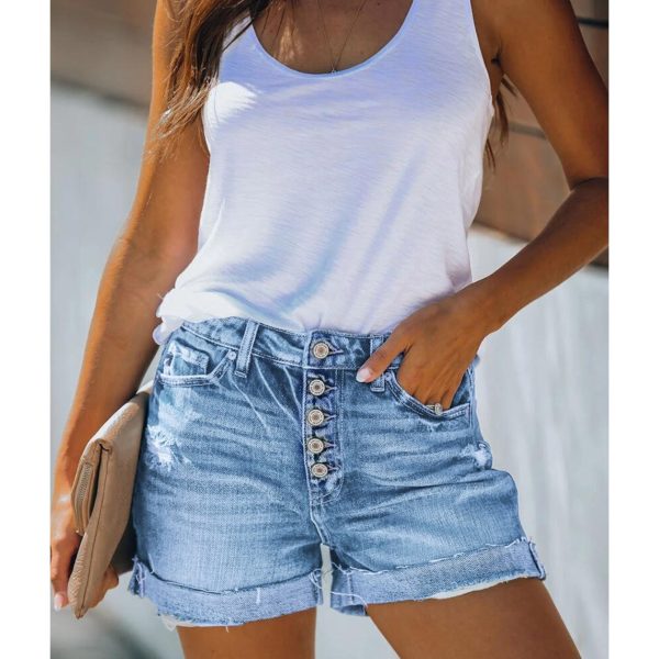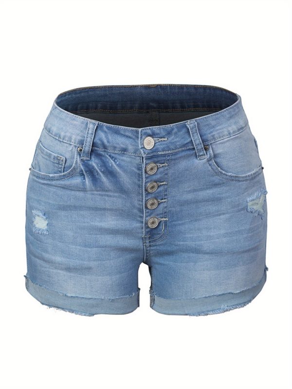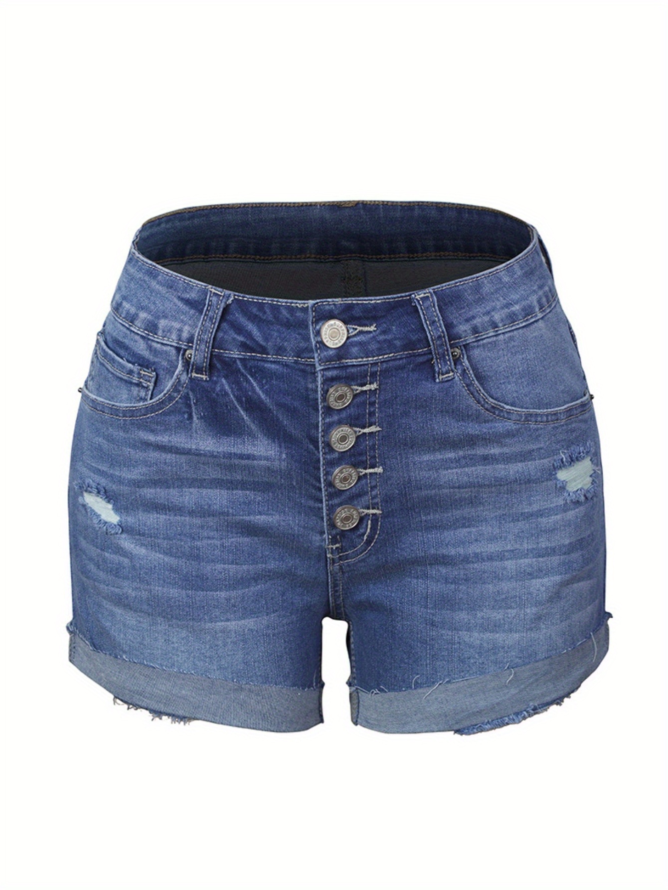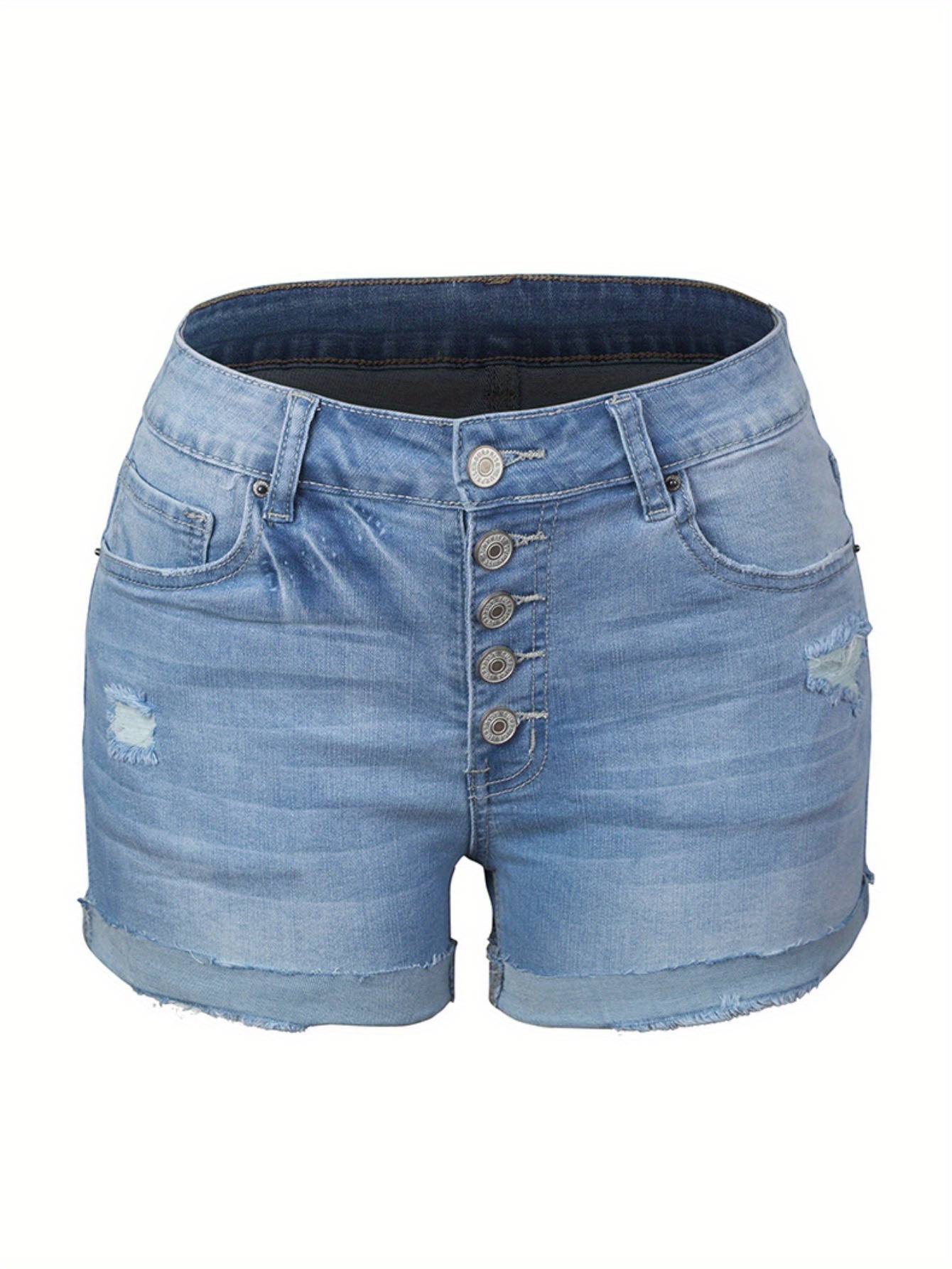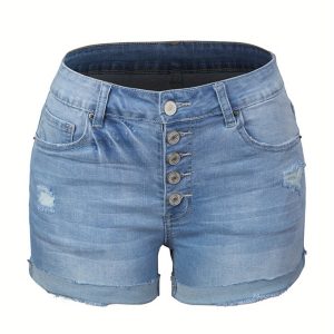 Women’S High-Rise Ripped Denim Shorts Casual Fashion Multi-buttonSummer Stretchy Jean Shorts with Frayed Raw Hem
