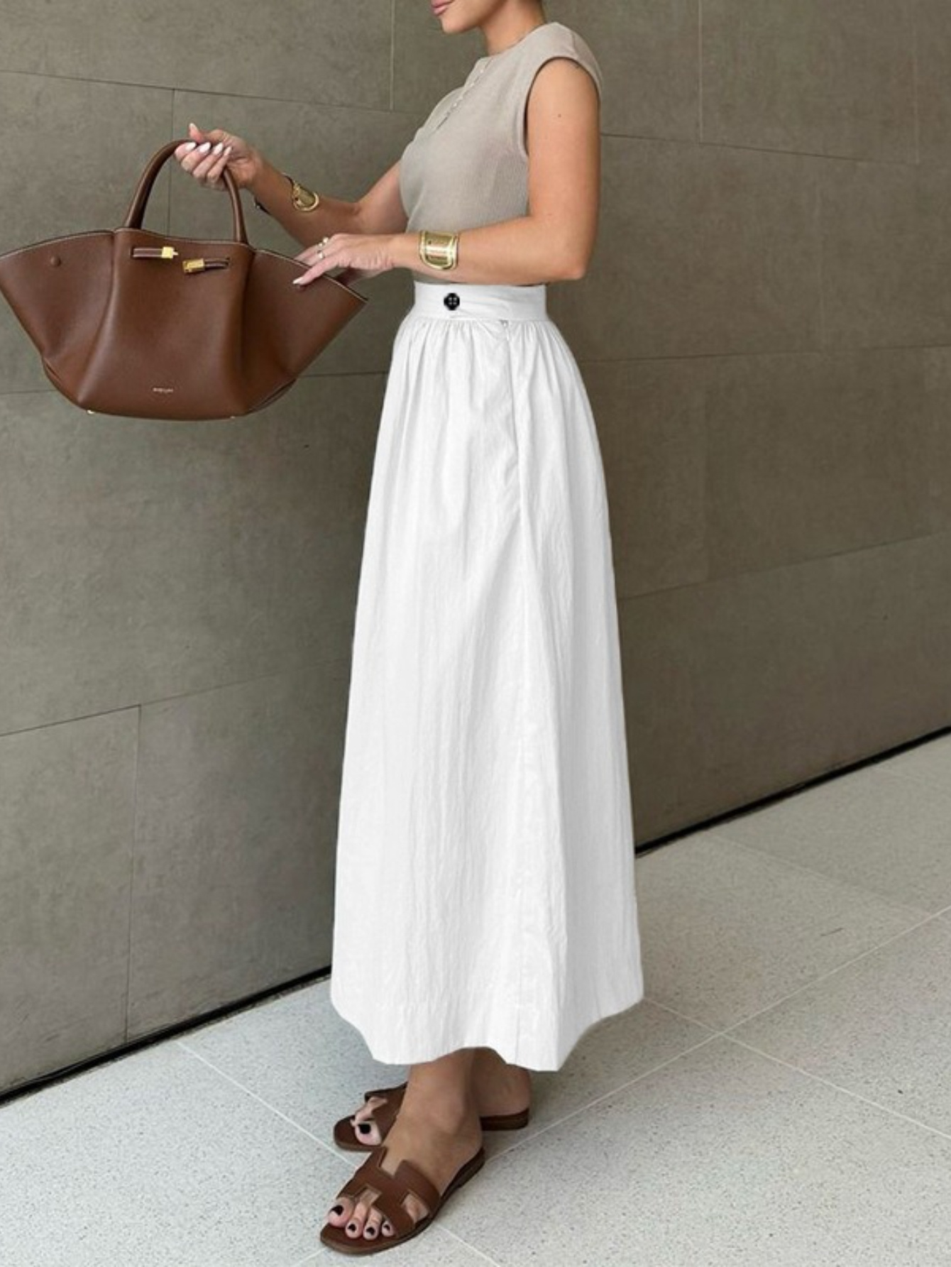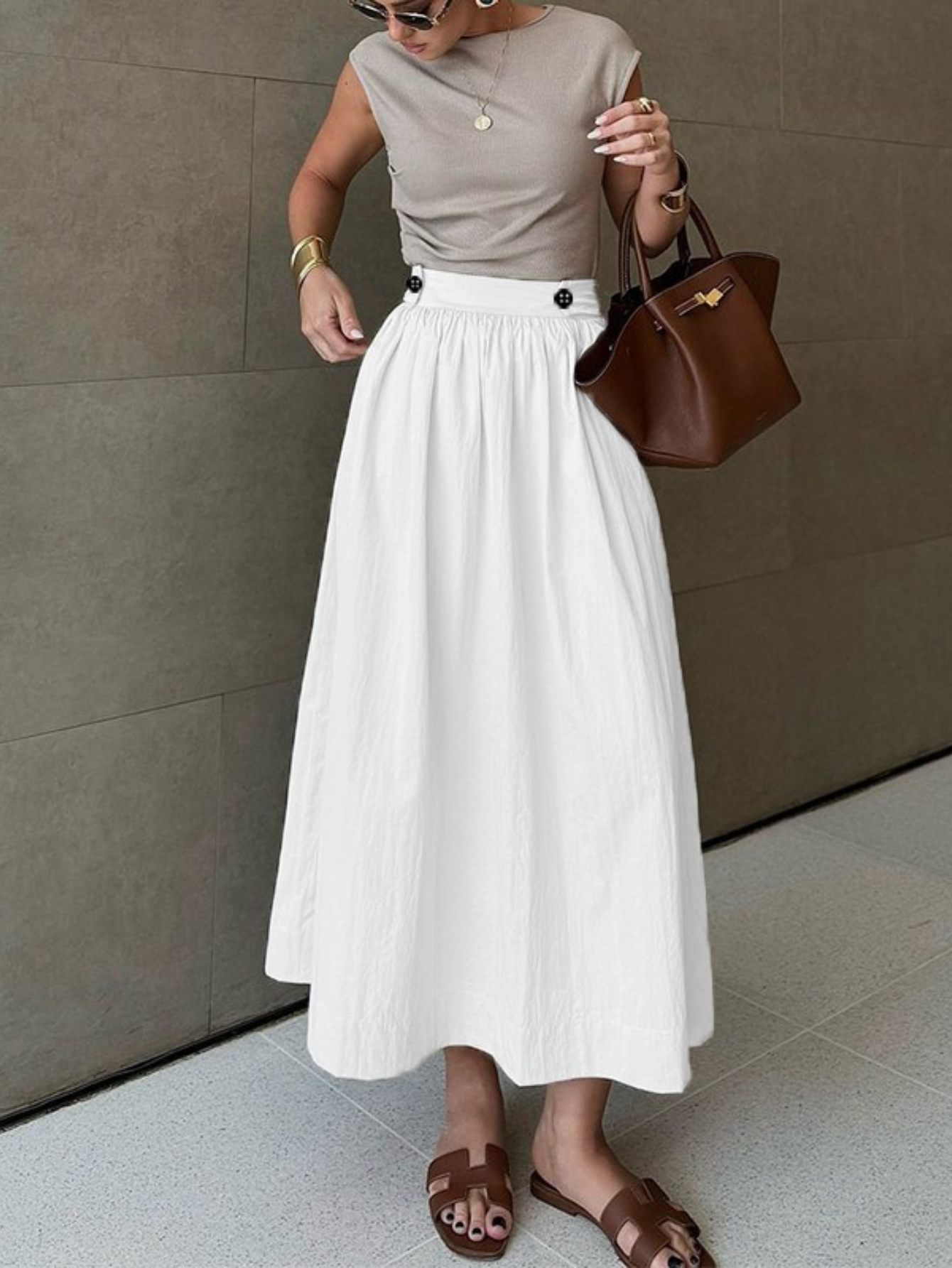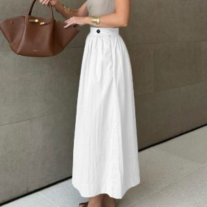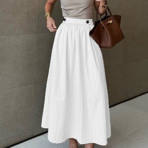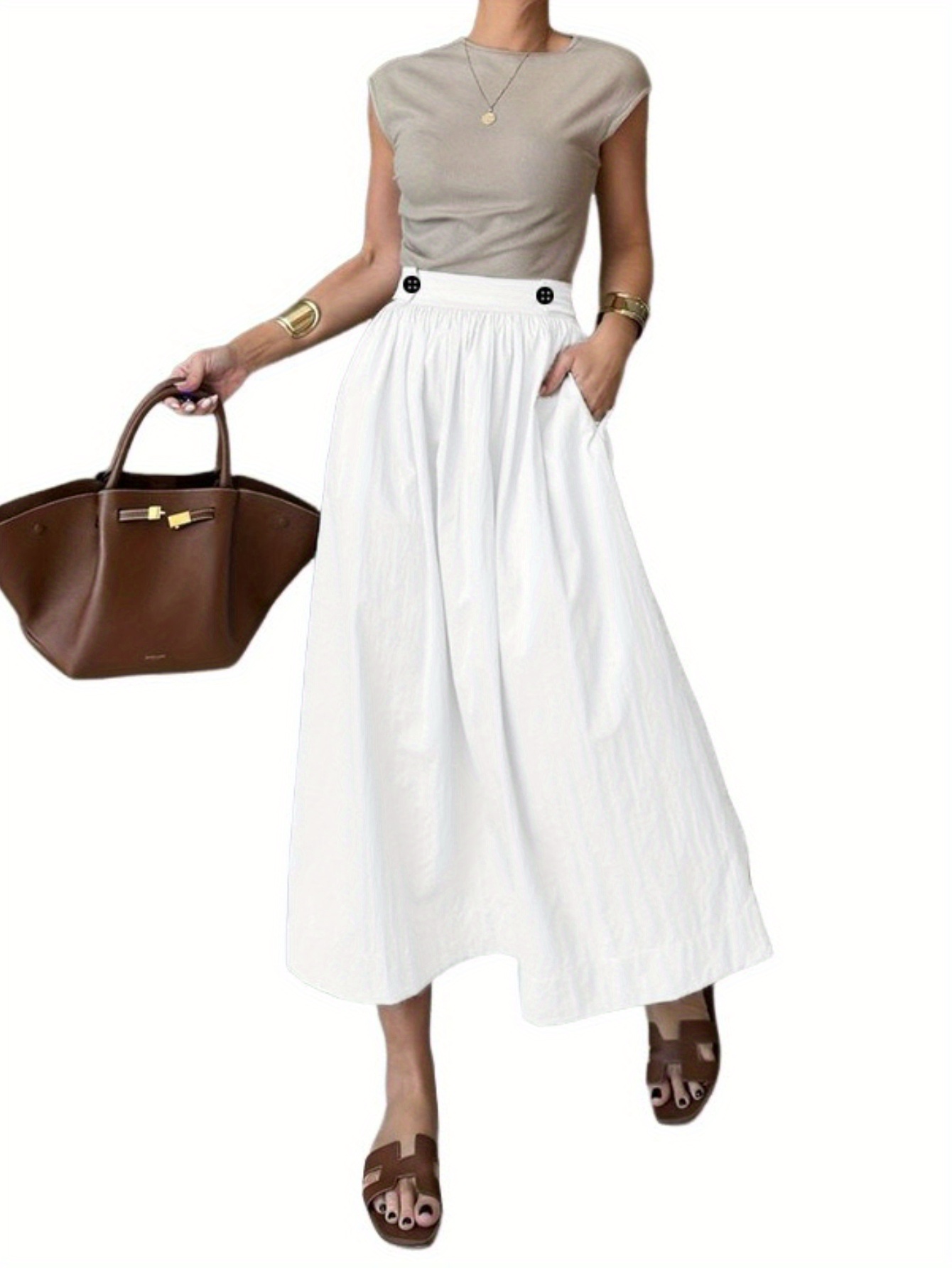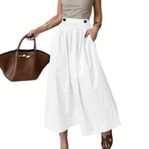 Women’S High-Waisted A-Line Skirt – Solid Color Beige, Lightweight Polyester Blend, Perfect for Springu002FSummeru002FFall, Versatile & Stylish Design, Casual Attire|Aline Skirt|Polyester Blend