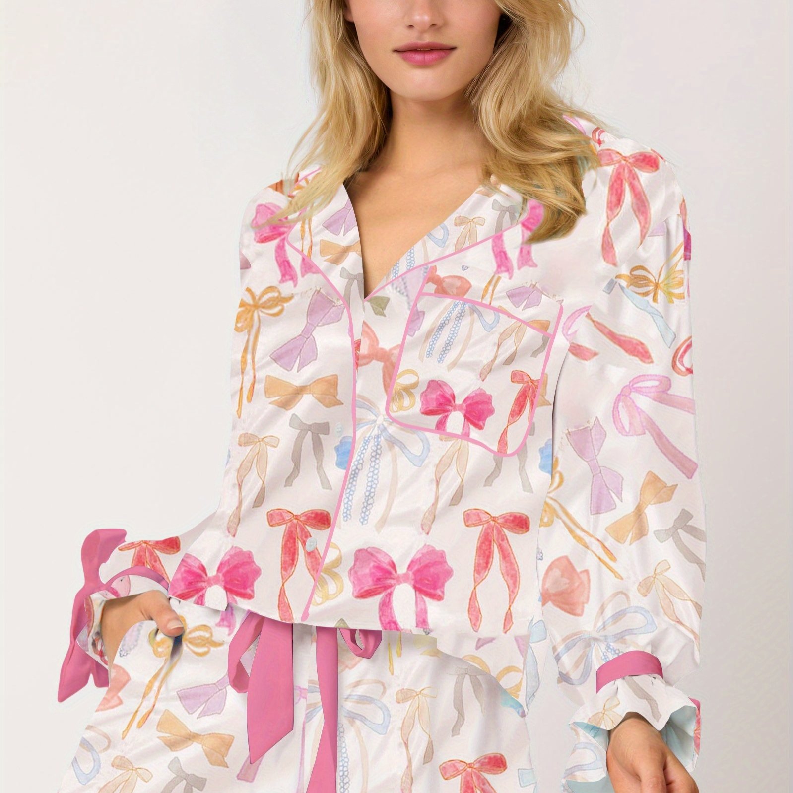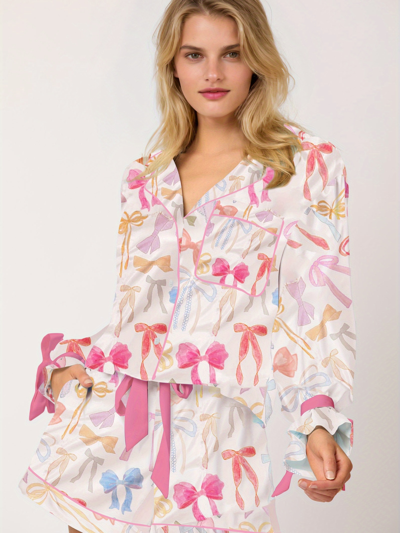 Women’S Nightwear Bow Printed Comfortable Bedroom Pajama Set